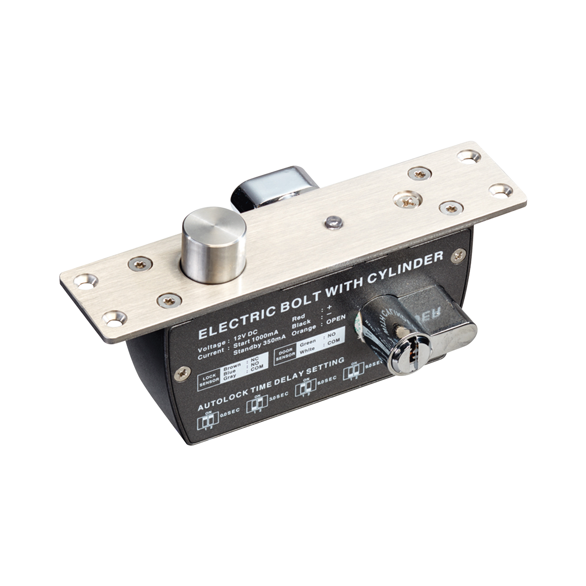 Cerradura de Perno 2000 kg de Sujeción / Cerrada en Caso de Falla (Fail Secure) /Temporizador y Sensor de Puerta