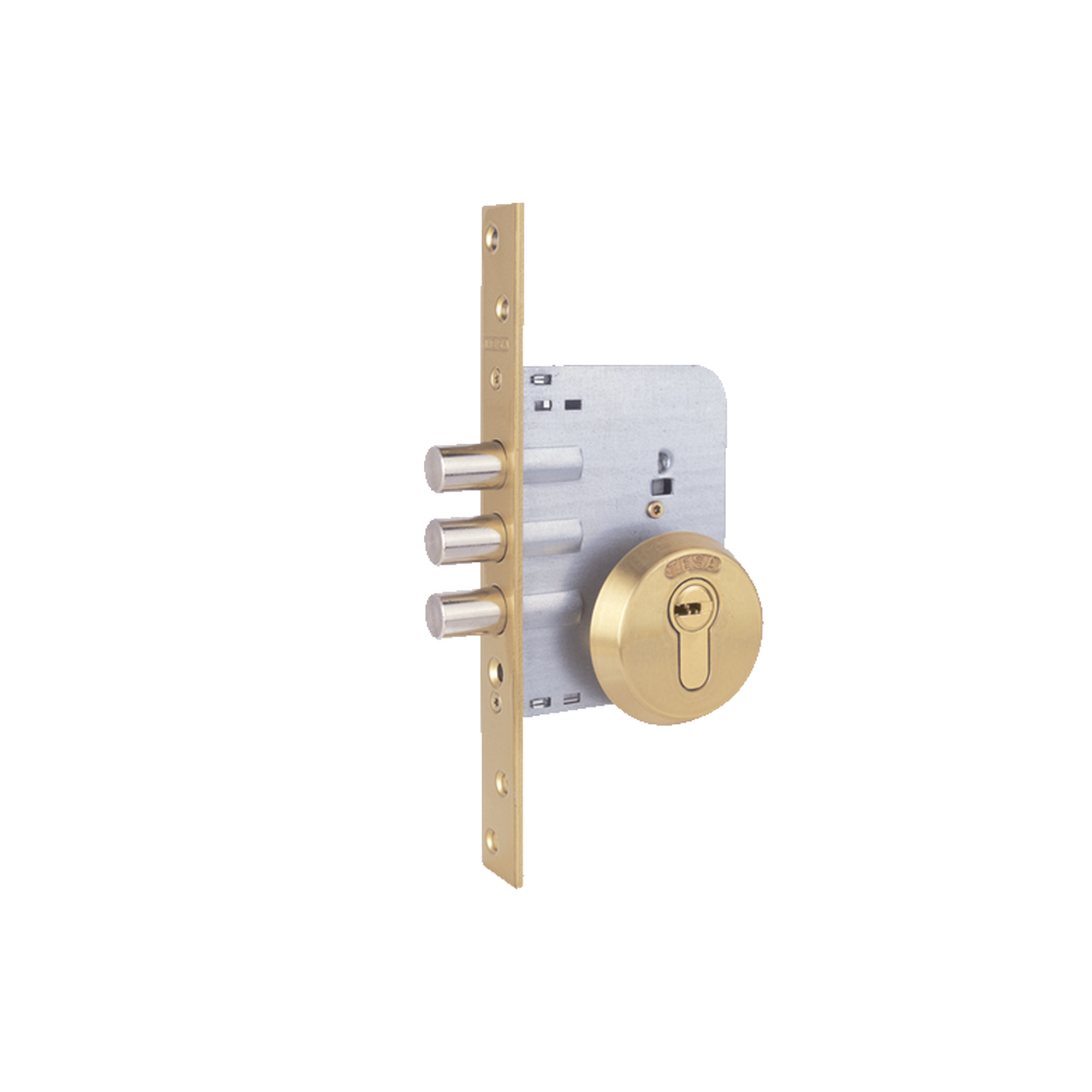 Cerradura de embutir auxiliar de bulones, sin resbalón y escudo E300L.