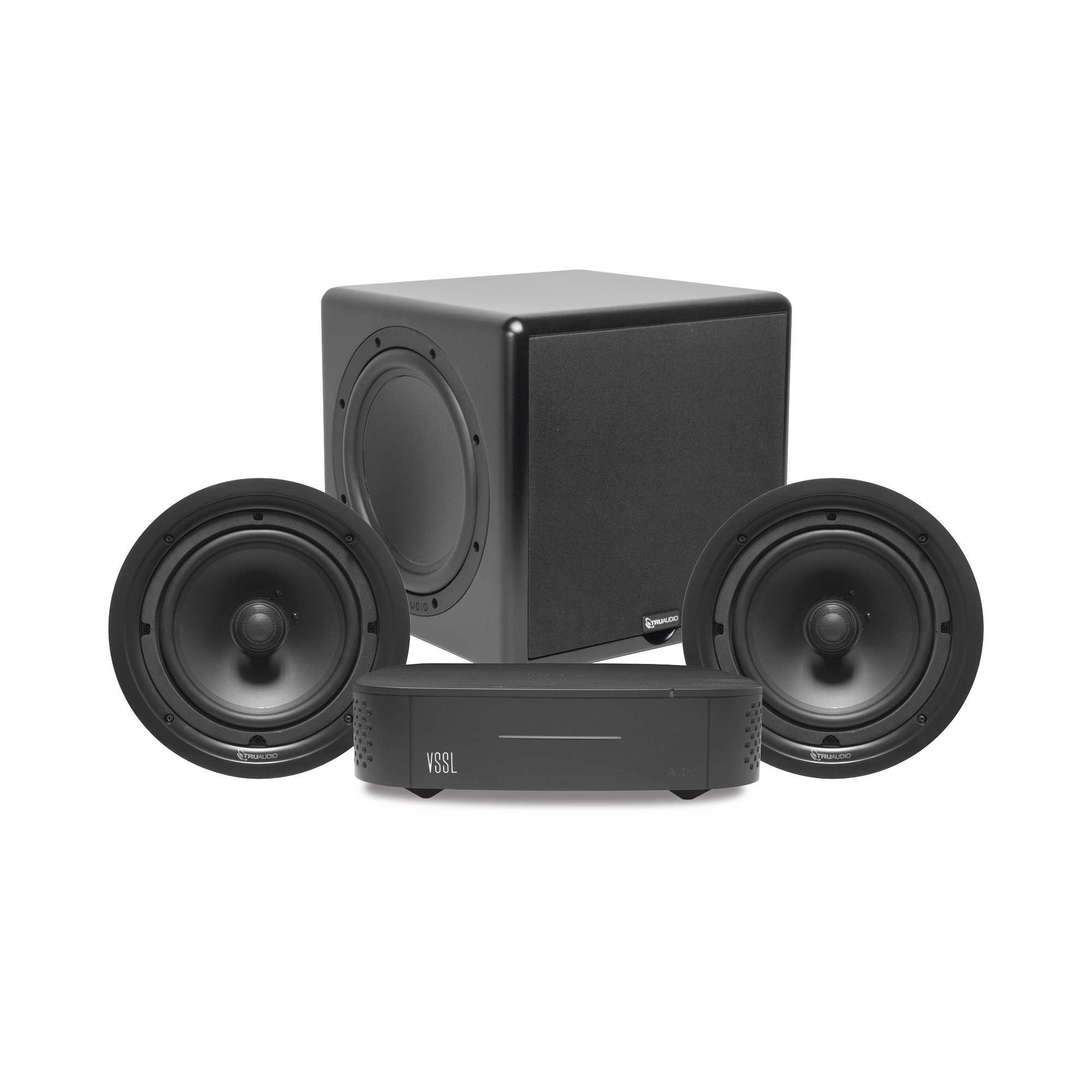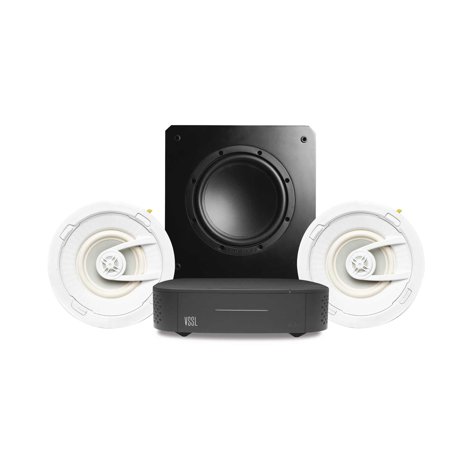 KIT Amplificador VSSL A1X | 2 Bocinas de Techo TruAudio PP8 | Subwoofer SS10