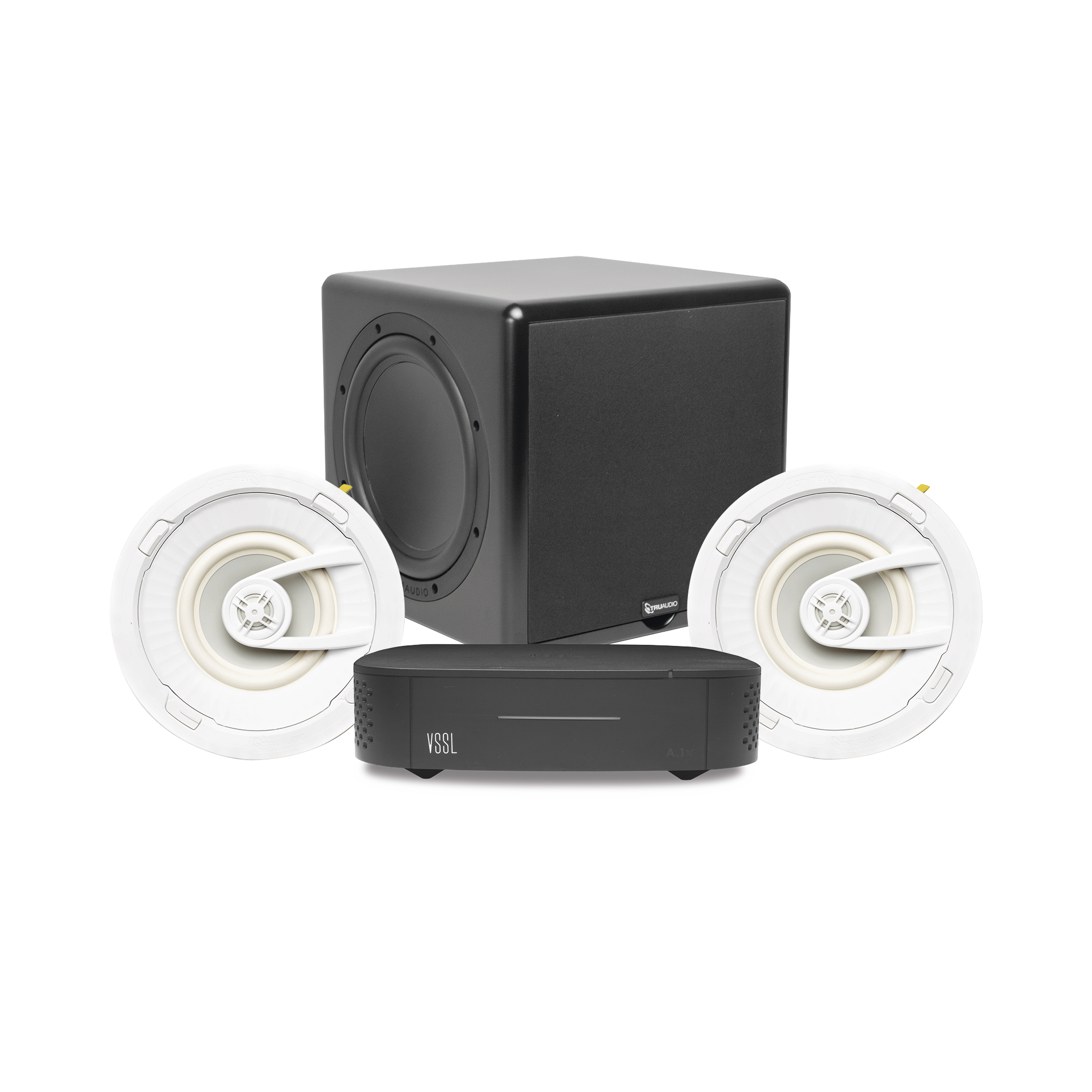 KIT Amplificador VSSL A1X | 2 Bocinas de Techo TruAudio G72 | Subwoofer SS10