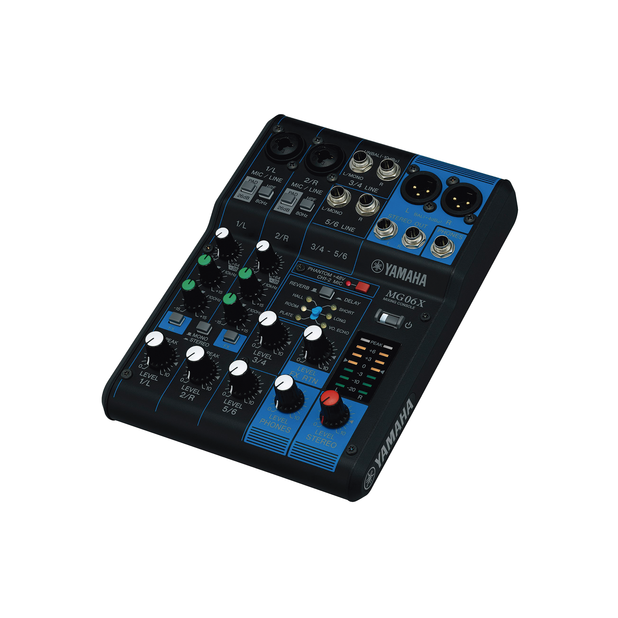 Mezcladora de Audio | 6 Canales | 2 entradas de micro/6 de línea (2 mono + 2 estéreo) | Efectos Integrados | Alimentación Phantom