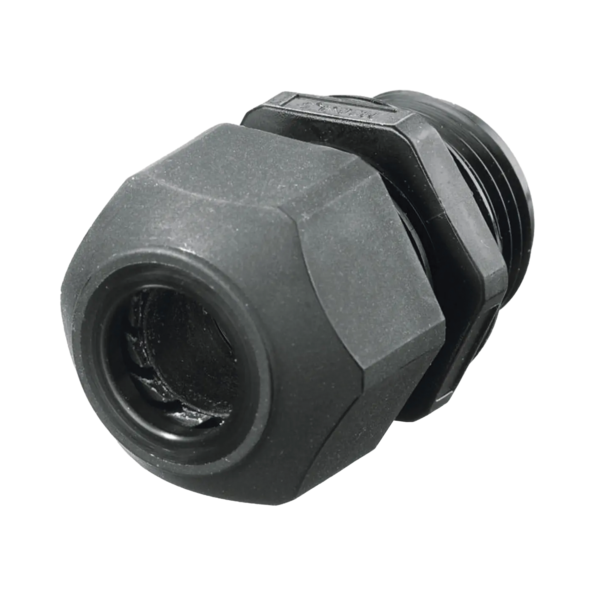 Conector de cable, estilo europeo para conductores de 0.18" a .31", para conduit 3/8", negro.
