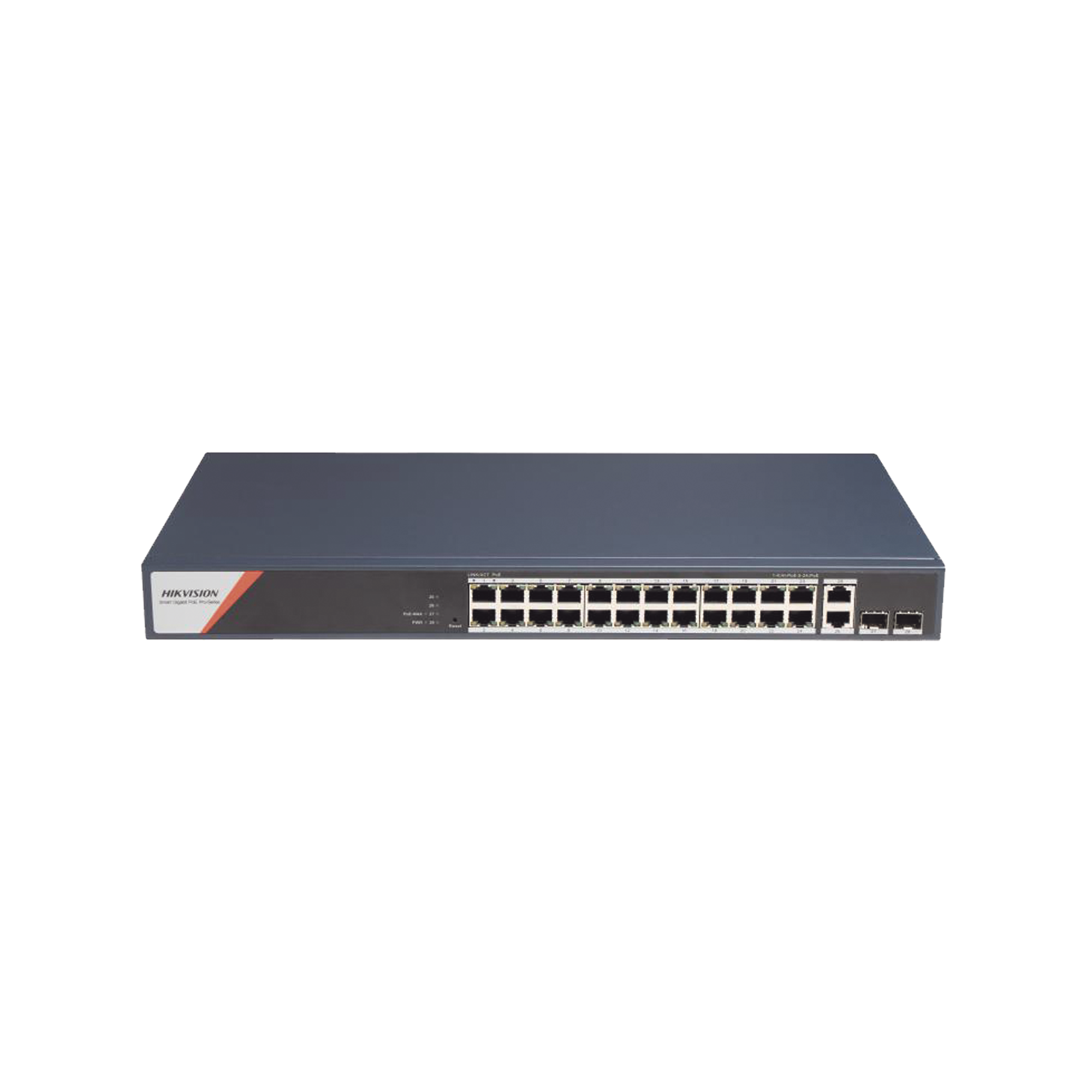 Switch Gigabit PoE+ / Administrable / 24 Puertos 1000 Mbps PoE+ (4 Puertos PoE++ 90 W) / 2 Puertos 1000 Mbps de Uplink / 2 Puertos SFP / Configuración Nube Hik-PartnerPro / Modo Extendido hasta 300 Metros / 370 W