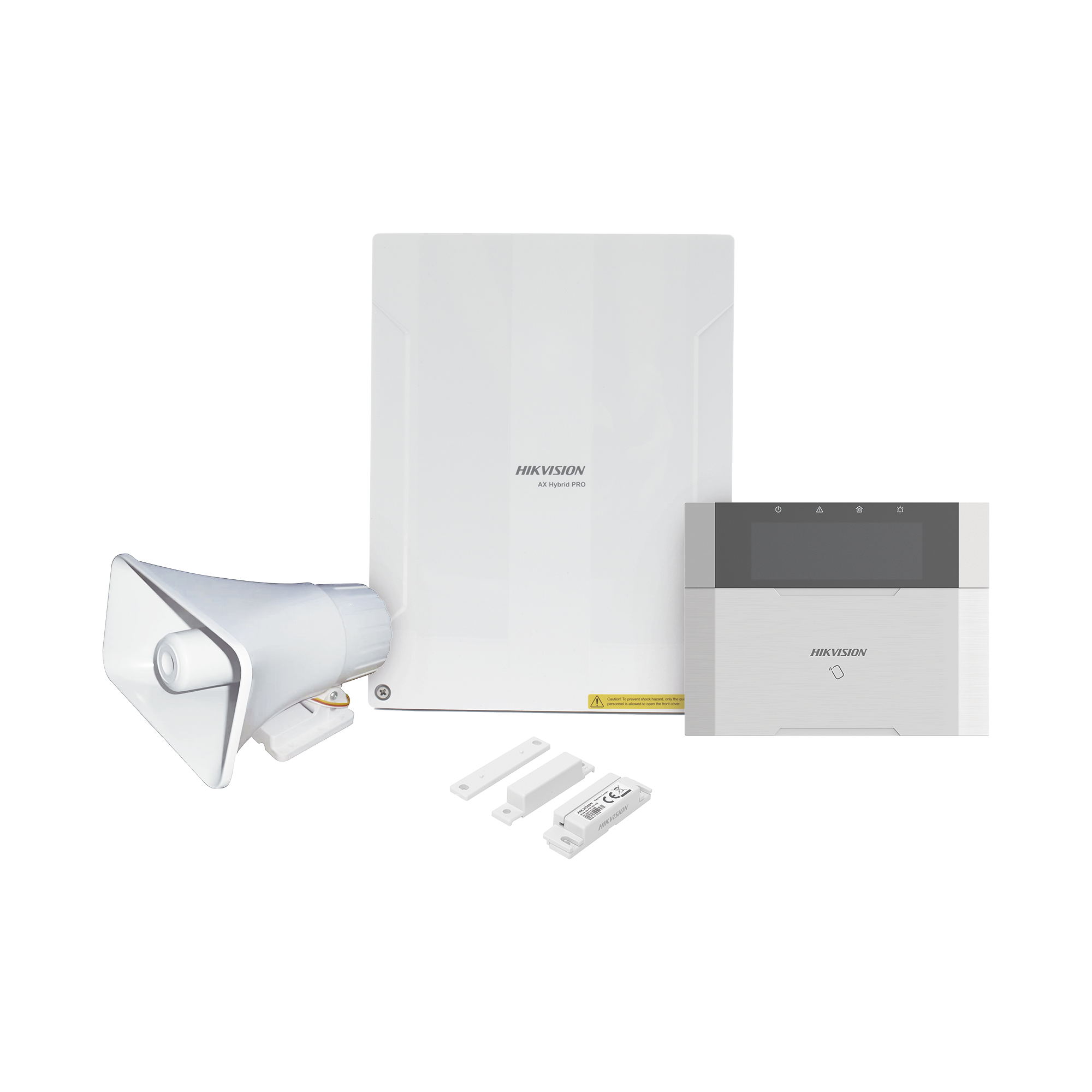 (AX PRO) KIT de Alarma AX PRO / Incluye: 1 Hub con bateria de respaldo / 1 Sensores PIR / 1 Montaje Universal para PIR / 2 Contactos Magnéticos / 1 Teclado / 1 Sirena Inalambrica Exterior / WiFi / Compatible con Hik-Connect P2P