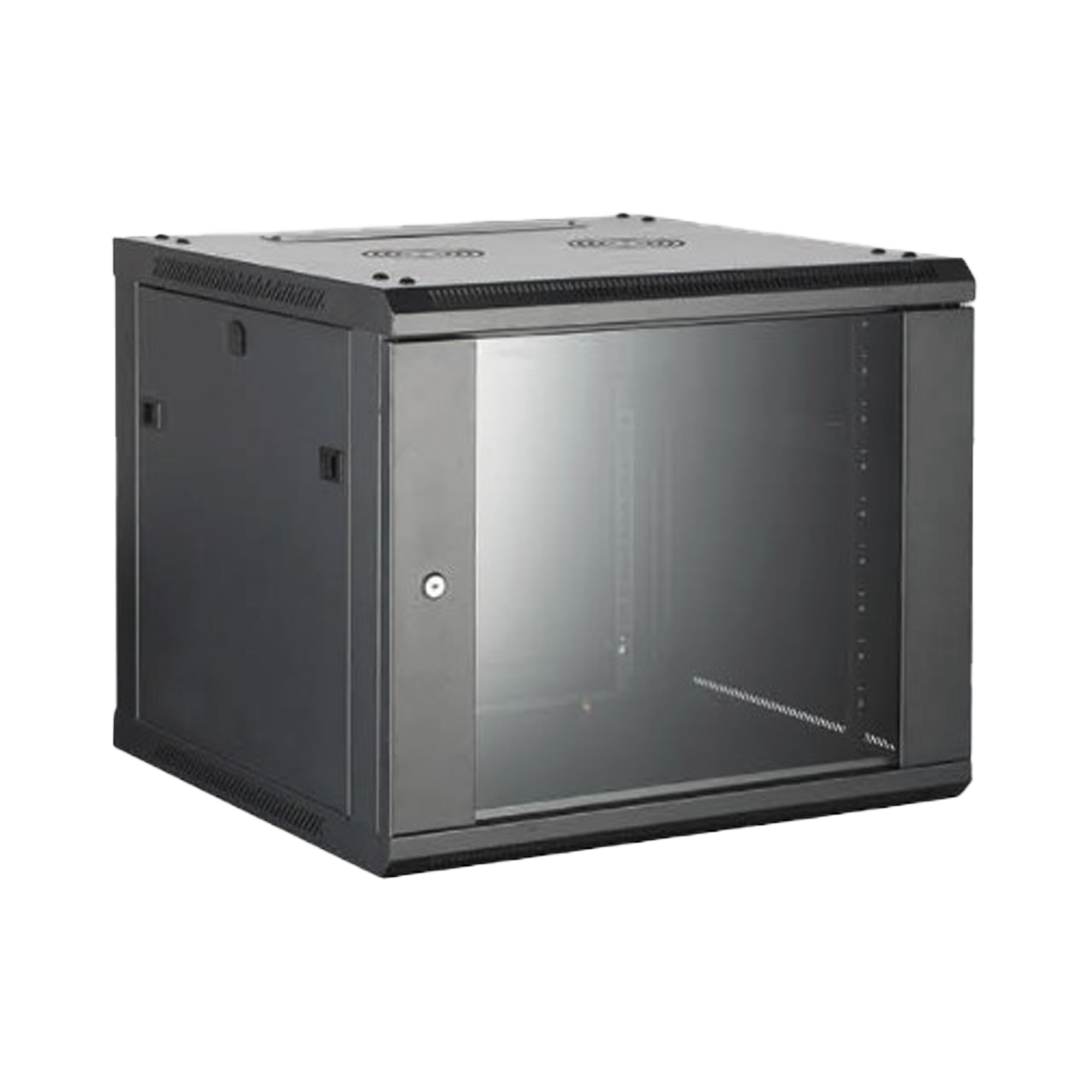 Gabinete para Montaje en Pared - Piso / Puerta de Cristal Templado / Cuerpo Fijo / 9 Unidades de Rack / 19" / Fabricado en Acero