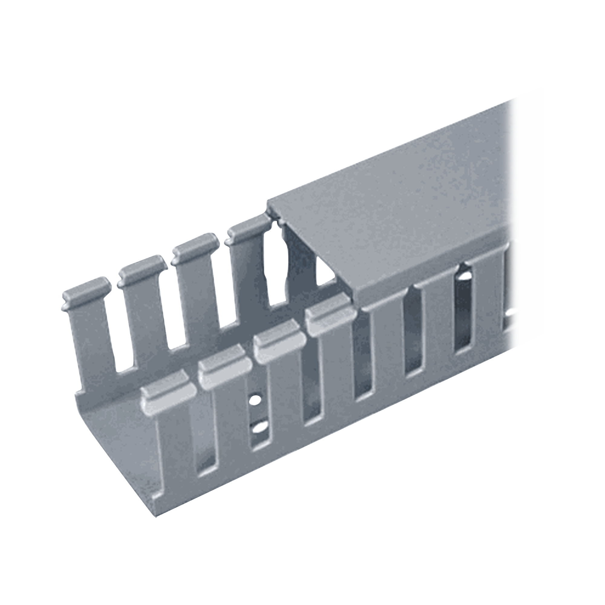 Canaleta Ranurada de PVC sin Tapa, Tipo H (Tapa Abisagrada), 55.1 mm de Ancho, 50.3 mm de Alto y 1828.8 mm de Largo, Color Gris