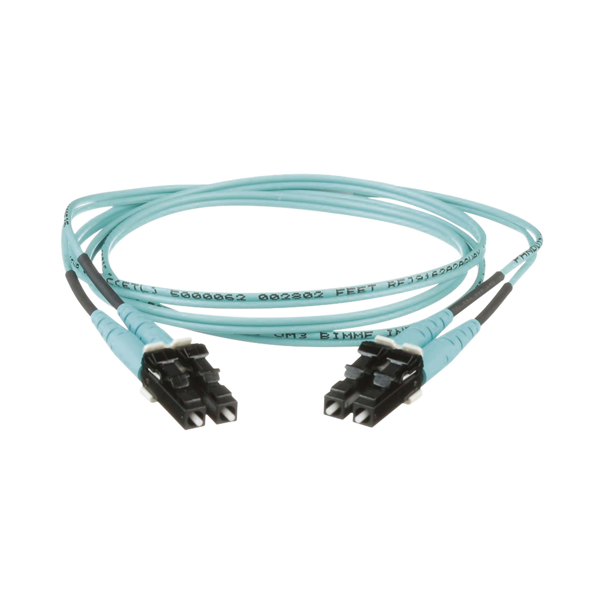 Jumper de Fibra Óptica Multimodo 50/125 OM4, LC-LC Duplex, OFNR (Riser), Color Aqua, 13 Metros