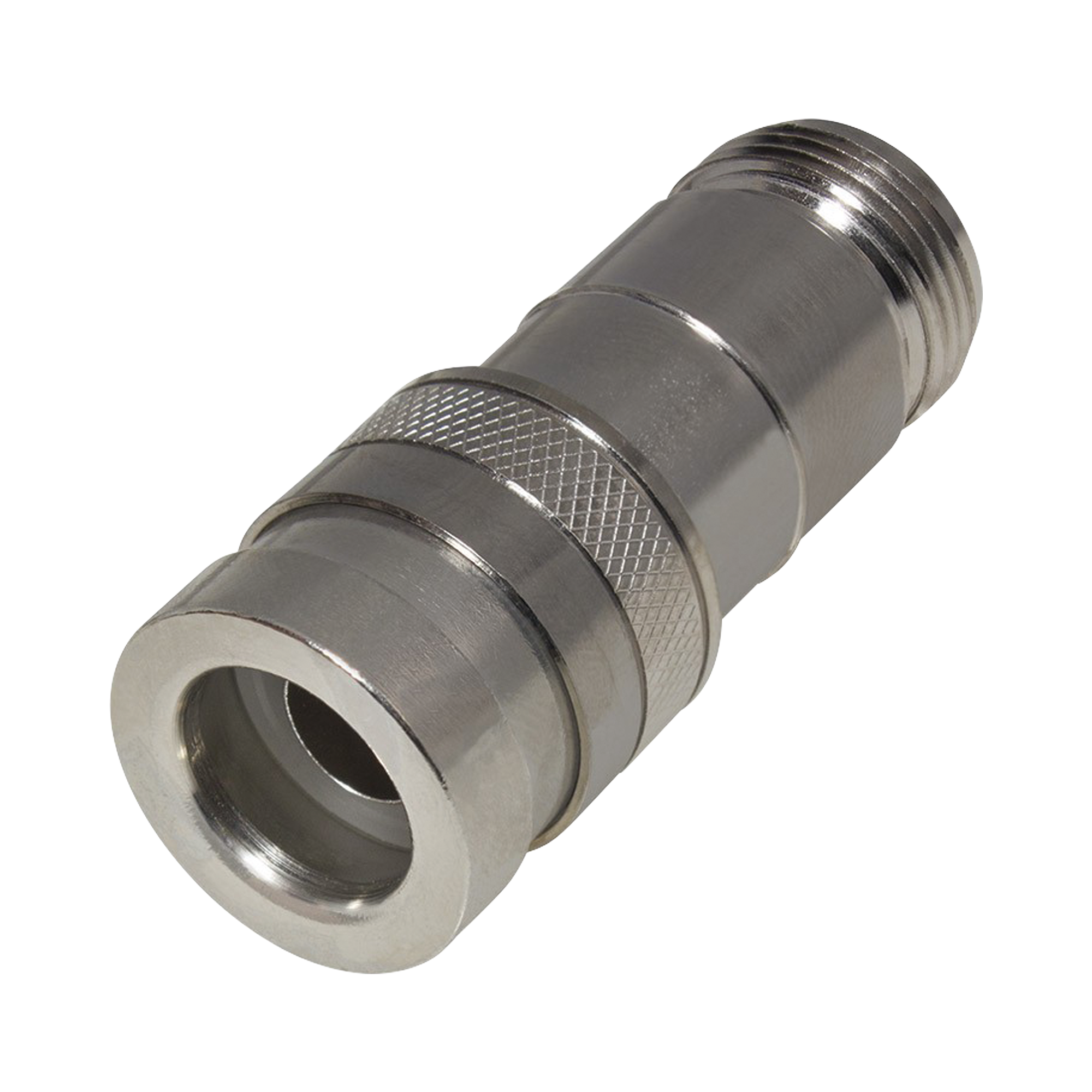 Conector N Hembra de Compresión, en Línea para LMR-400, CNT-400, RG-8/U, Plata/ Oro/ Teflón.
