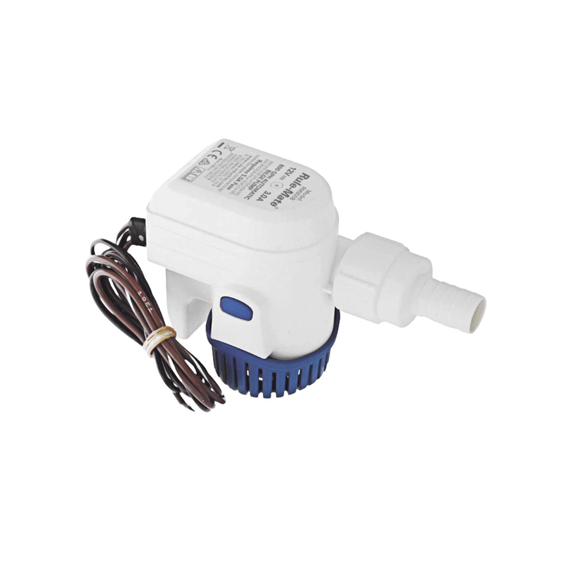 Bomba sumergible de achique automatizada de 800 galones por hora, para conexión de 12 Volts de corriente directa.