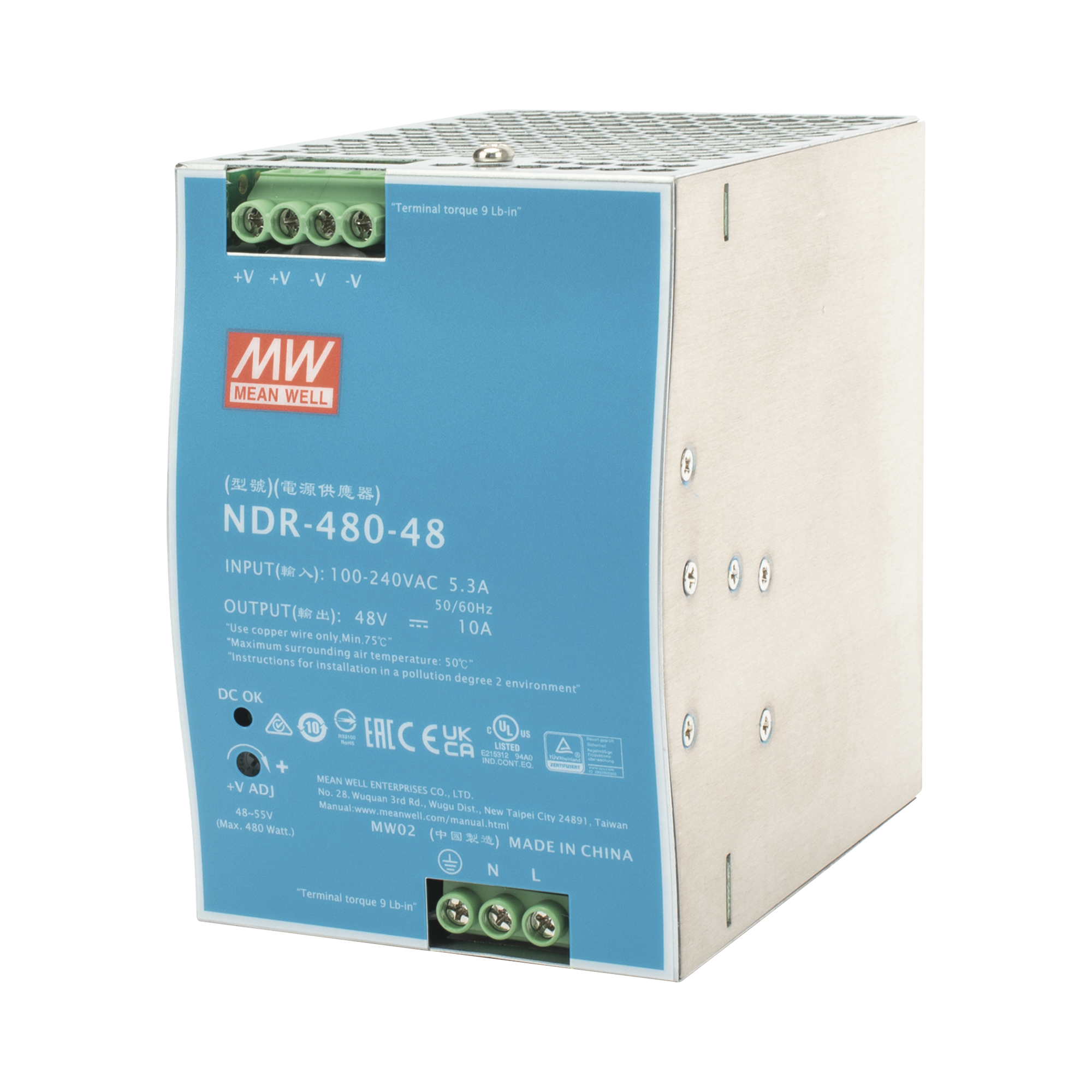 Fuente de Poder Industrial de 480W, salida 48 Vcc, para montaje en riel Din