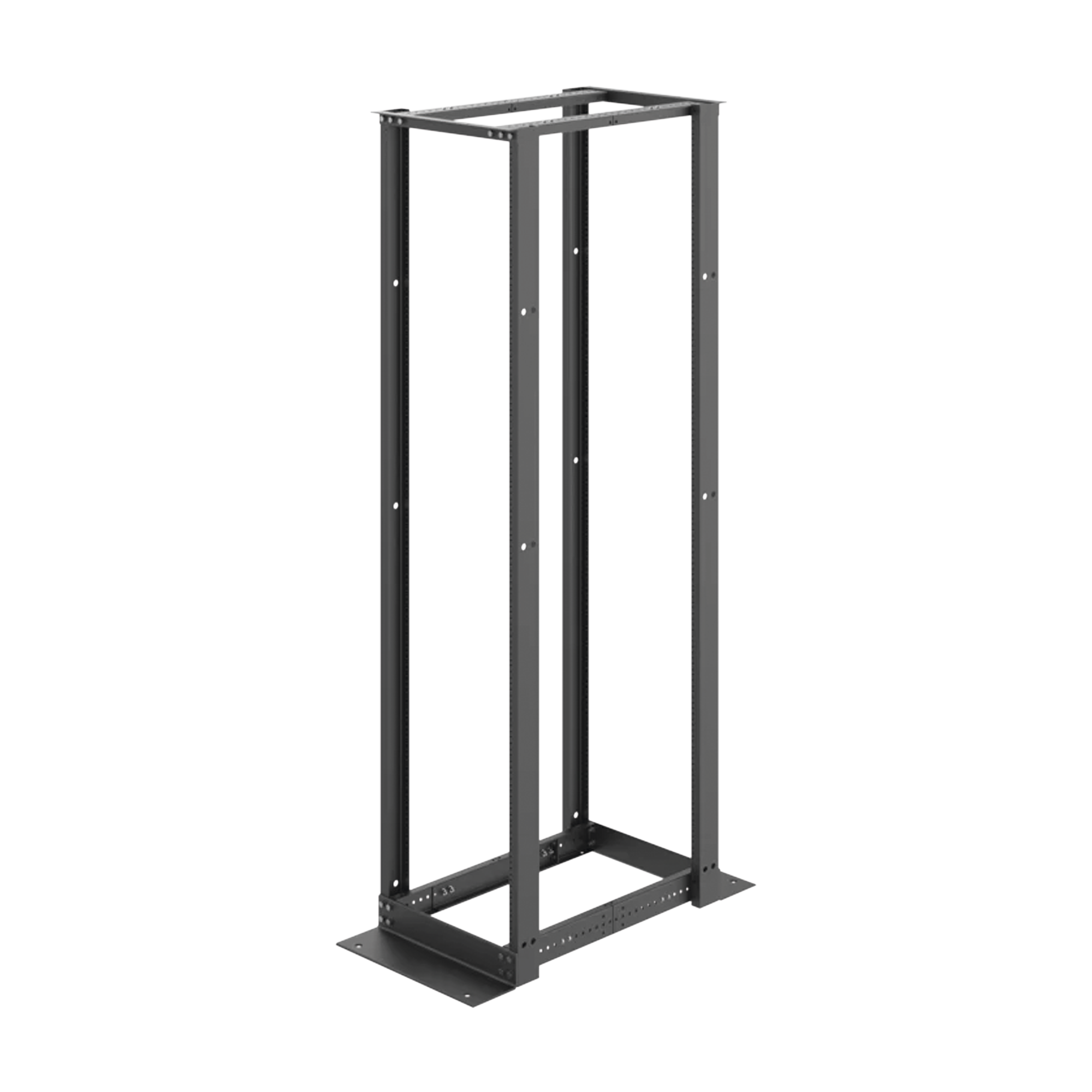 Rack de Dos Postes Estándar de 19 in, Rieles Numerados y Roscados #12-24, Fabricado en Aluminio, 45 Unidades de Rack, Color Negro