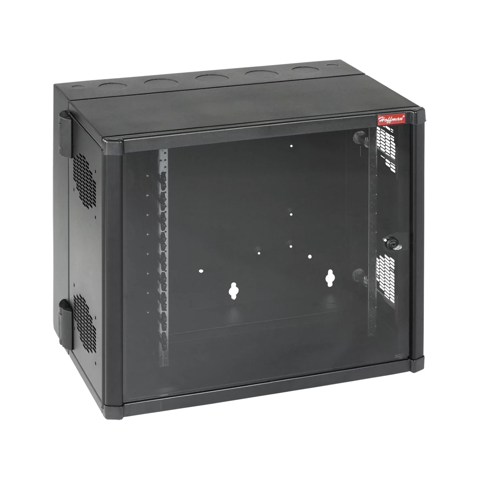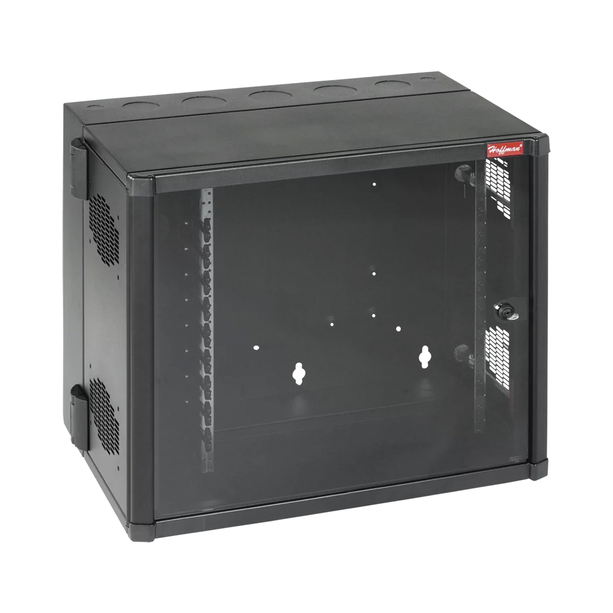 Gabinete AccessPlus de Montaje en Pared de 19in, Rieles Numerados y Roscados #10-32, Puerta con Ventana de Seguridad, 600 mm de Ancho, 637 mm de Profundidad, 12 UR, Color Negro