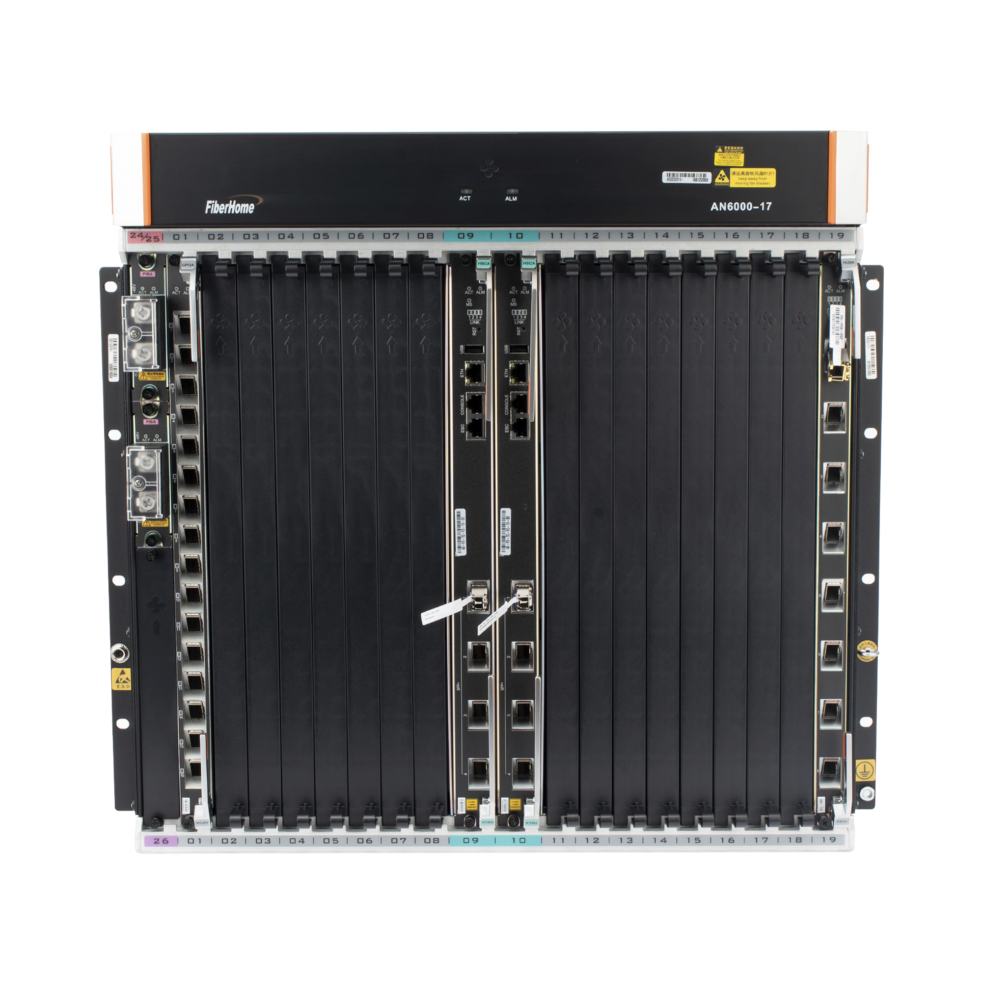 OLT Carrier Class Modular GPON, 16 Ranuras de Servicio, Incluye 1 Tarjeta de Servicio, crecimiento hasta 256 puertos GPON o 128 XGPON, Gestión por UNM2000, CLI, (Incluye Instalación de Software UNM2000)