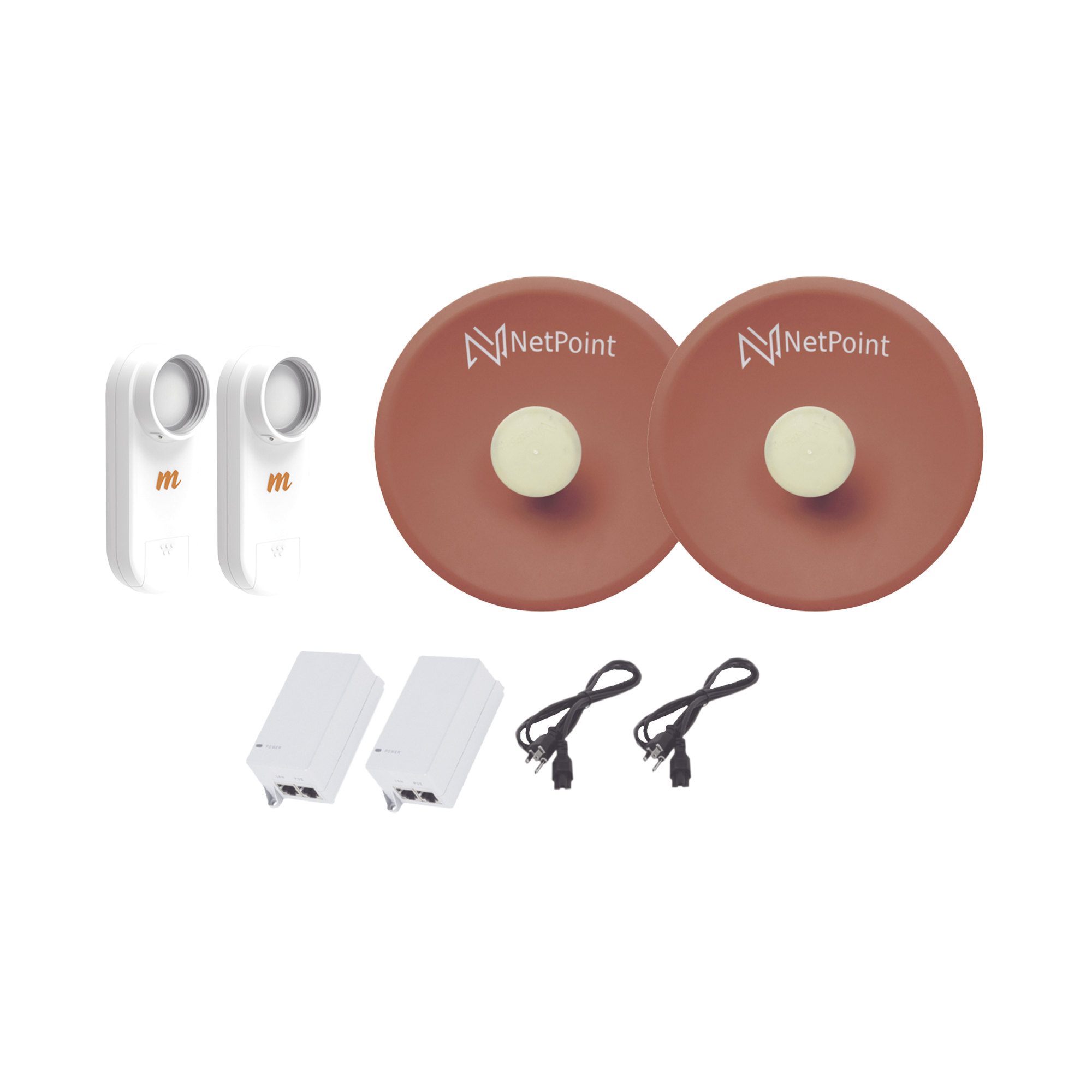Kit de 2 radios C5X con antenas NPPROS2PACK (27 dBi), rango de frecuencia extendida (4.9 a 6.4 GHz), incluye inyector POE y cable de alimentación