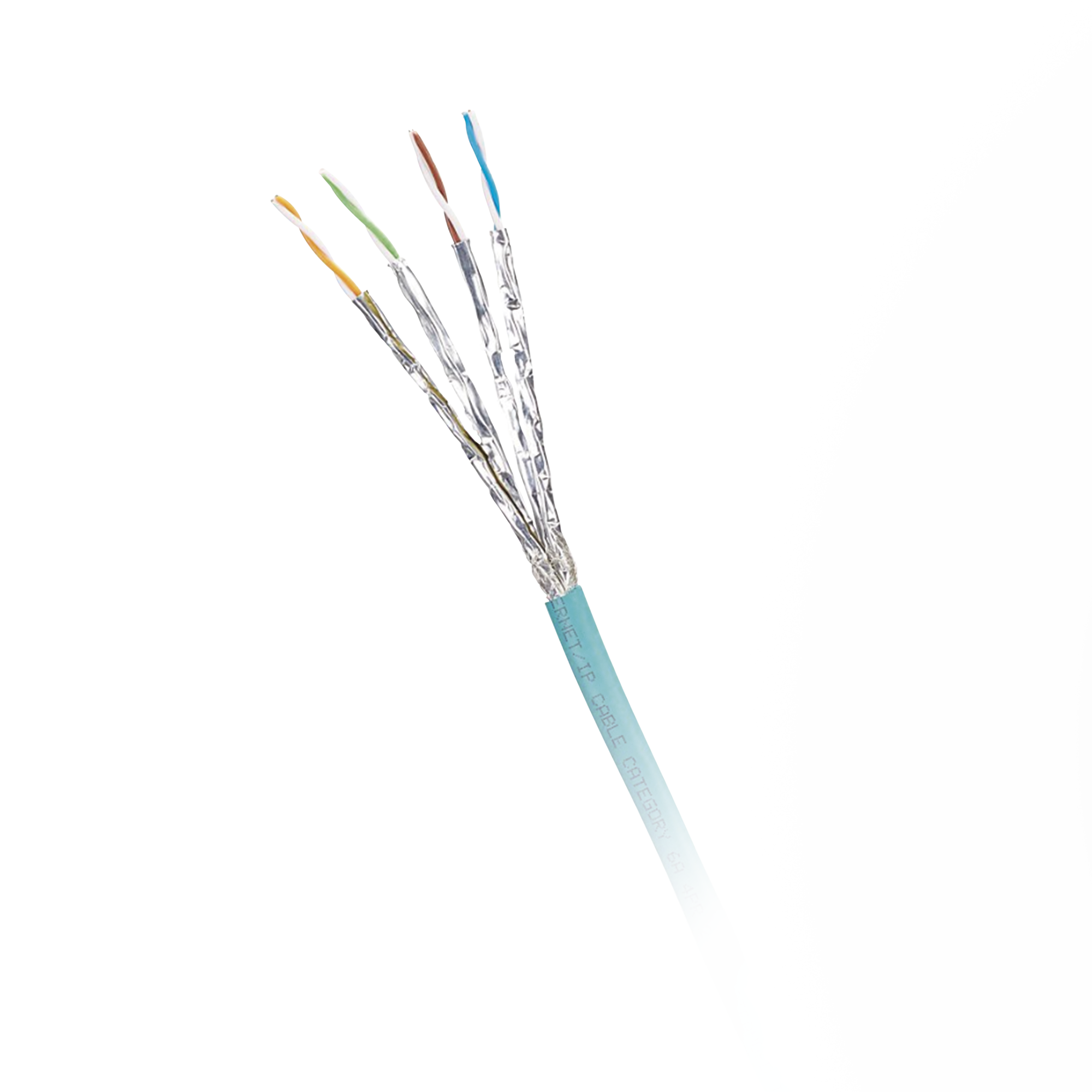 Bobina de Cable Blindado S/FTP Categoría 6A, Uso Industrial con Resistencia al Aceite, Rayos UV y Abrasión, Multifilar (Flexible), Color Azul Cerceta, Bobina de 500m