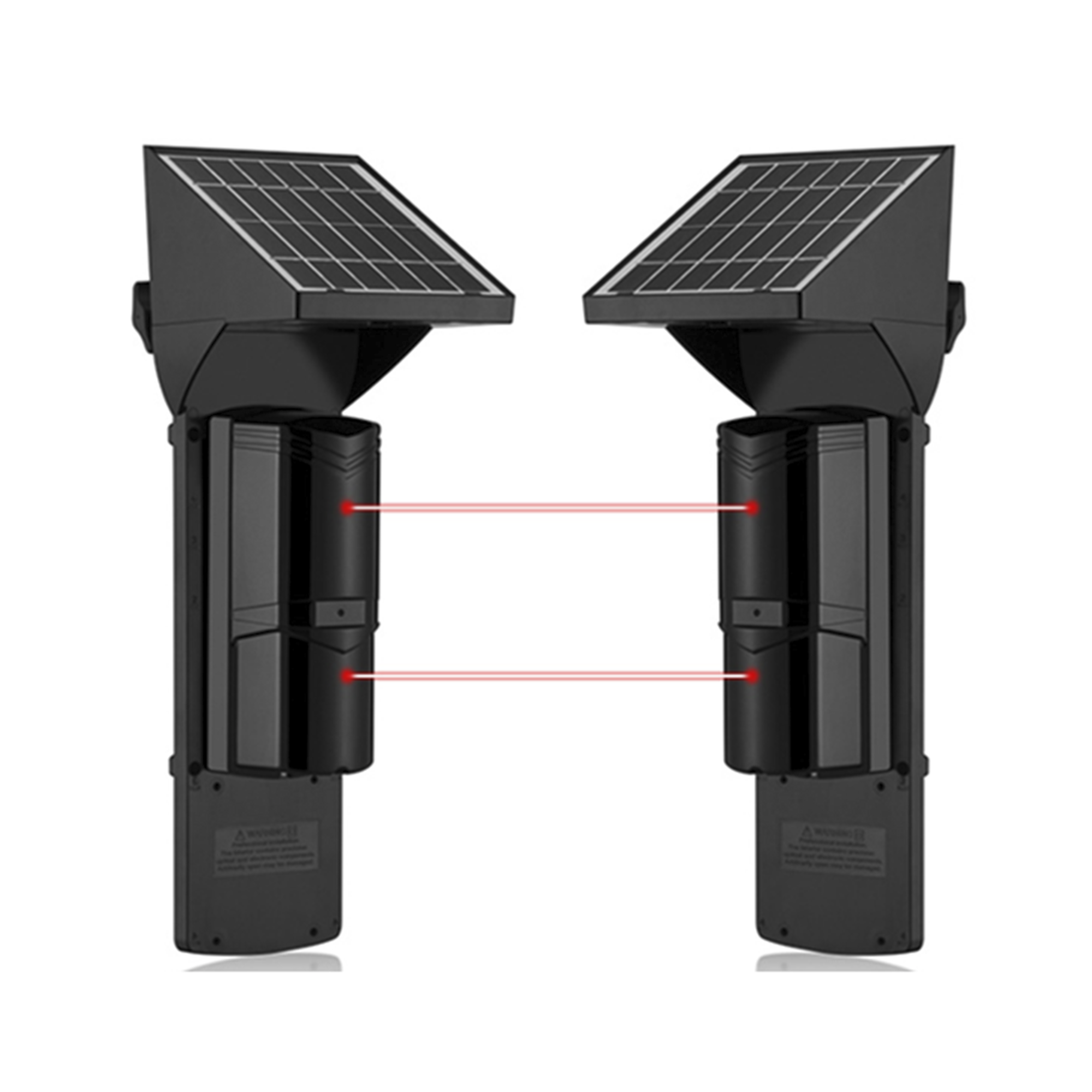 Detector fotoelectrico con celda solar ; DE 2 RAYOS; alcance exterior 60 m / interior 120 m, 4 frecuencias / Para ambientes donde no hay electricidad