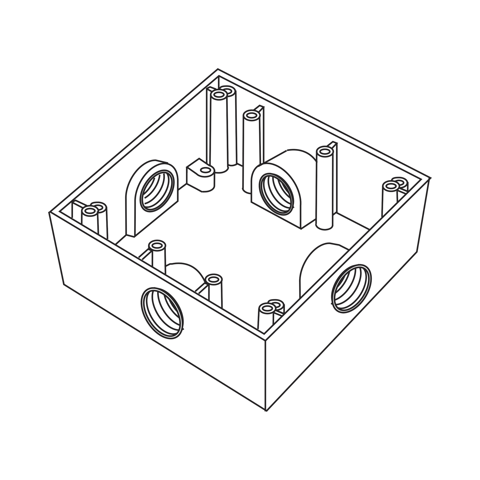 Caja Cuadrada de 3/4" (19.05 mm) a Prueba de Intemperie/ Cuenta con 4 bocas.