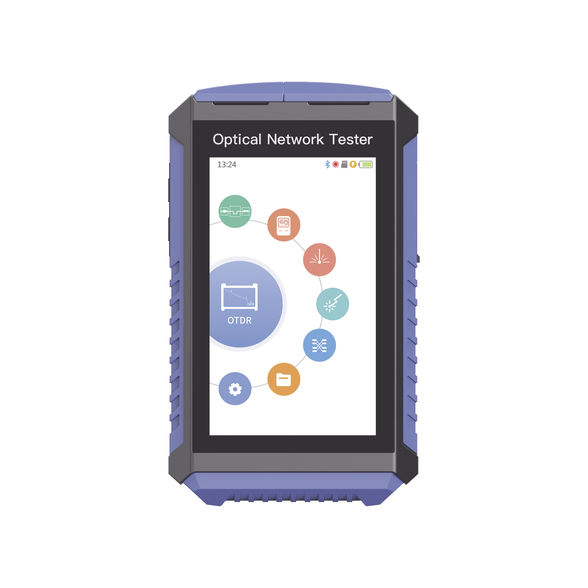 OTDR Touch para Pruebas en los Enlaces de Fibra Óptica / Longitudes de onda 1310nm y 1550nm / Función VFL 10mW / Función OPM / Función de Mapeo de cables de Red RJ45 / Recargable / Distancia de prueba de hasta 260km