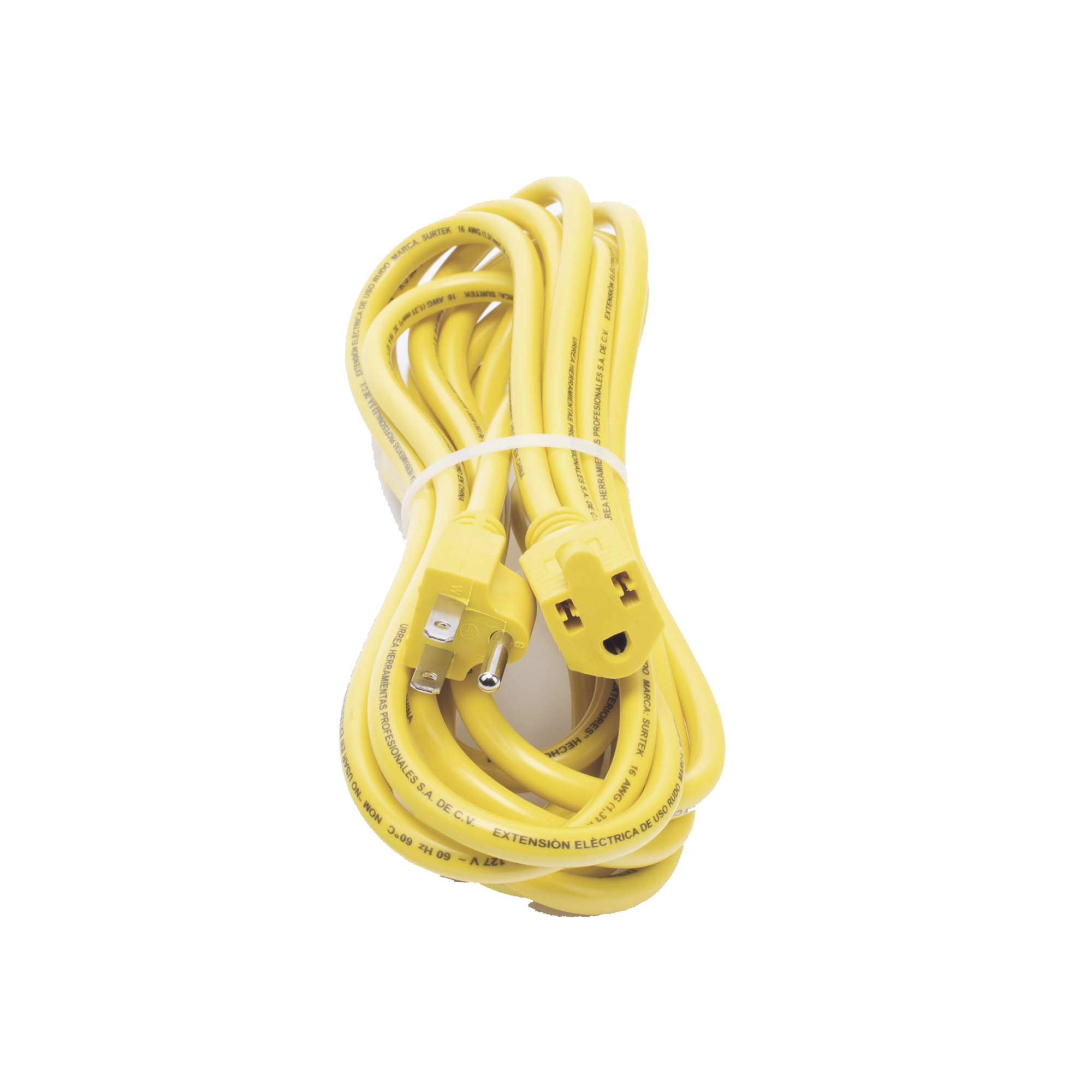 Extensión Eléctrica de Uso Rudo Aterrizada 7.6 metros / 127 V CA 10 A Máximo / Color Amarillo.