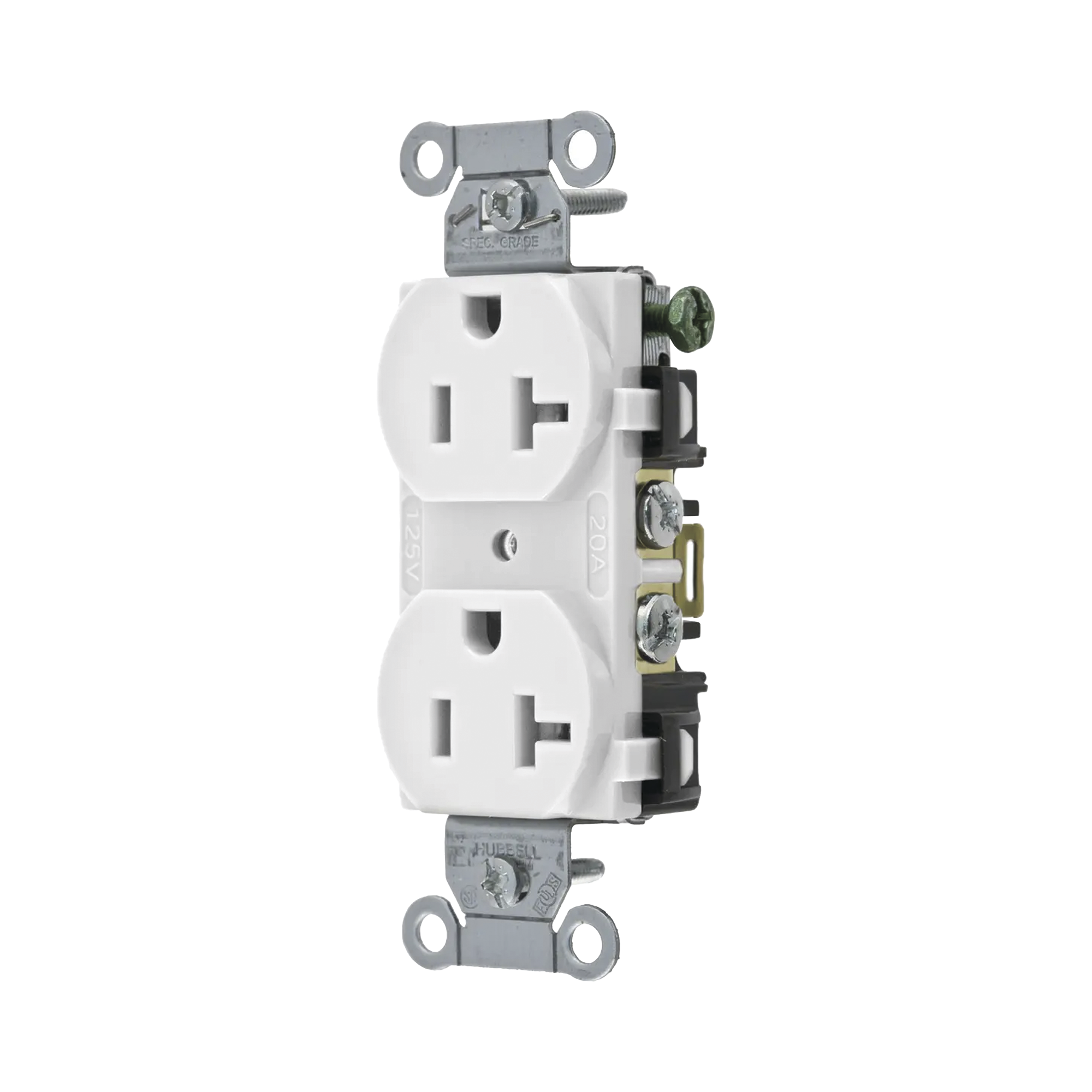 Contacto Dúplex 20 A, 125 V, 2 Polos, 3 Hilos, Cableado Posterior y Lateral, Color Blanco (Nema 5-20R).
