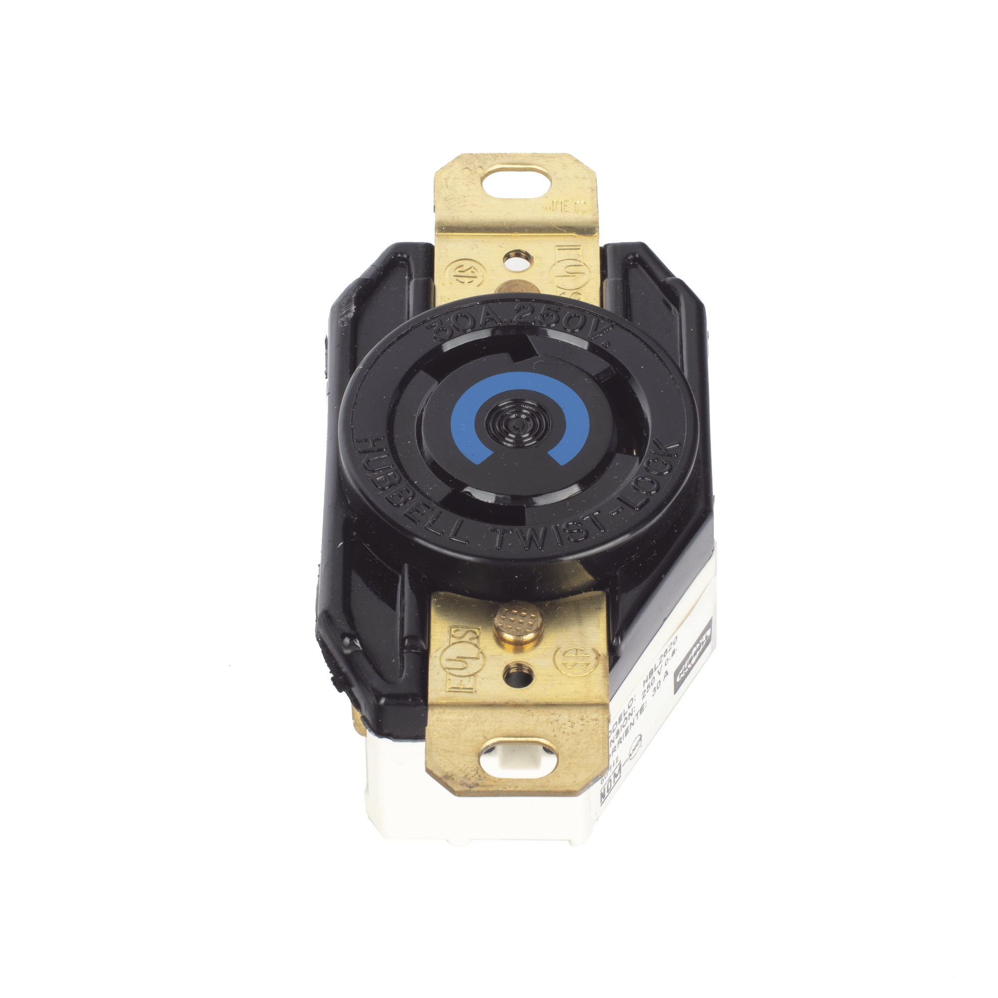 Receptáculo de Media Vuelta Industrial 30 A 250 V CA 2 Polos 3 Hilos (Nema L6-30R) Color Negro.