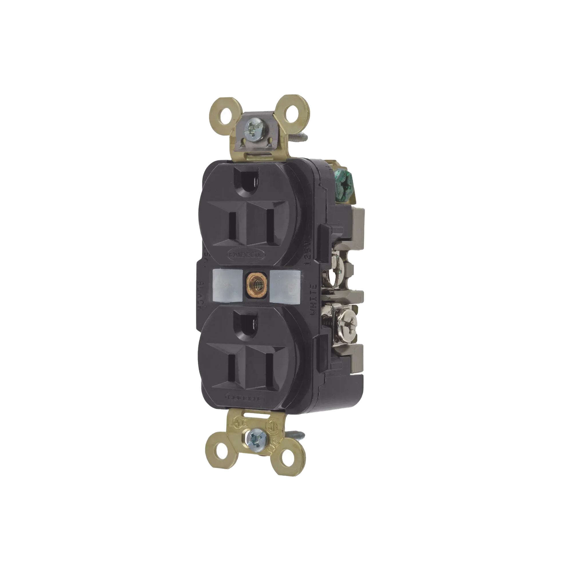 Contacto Dúplex 15 A 125 V / 2 Polos 3 Hilos/ Color Negro / Nema 5-15R / Grado Industrial.