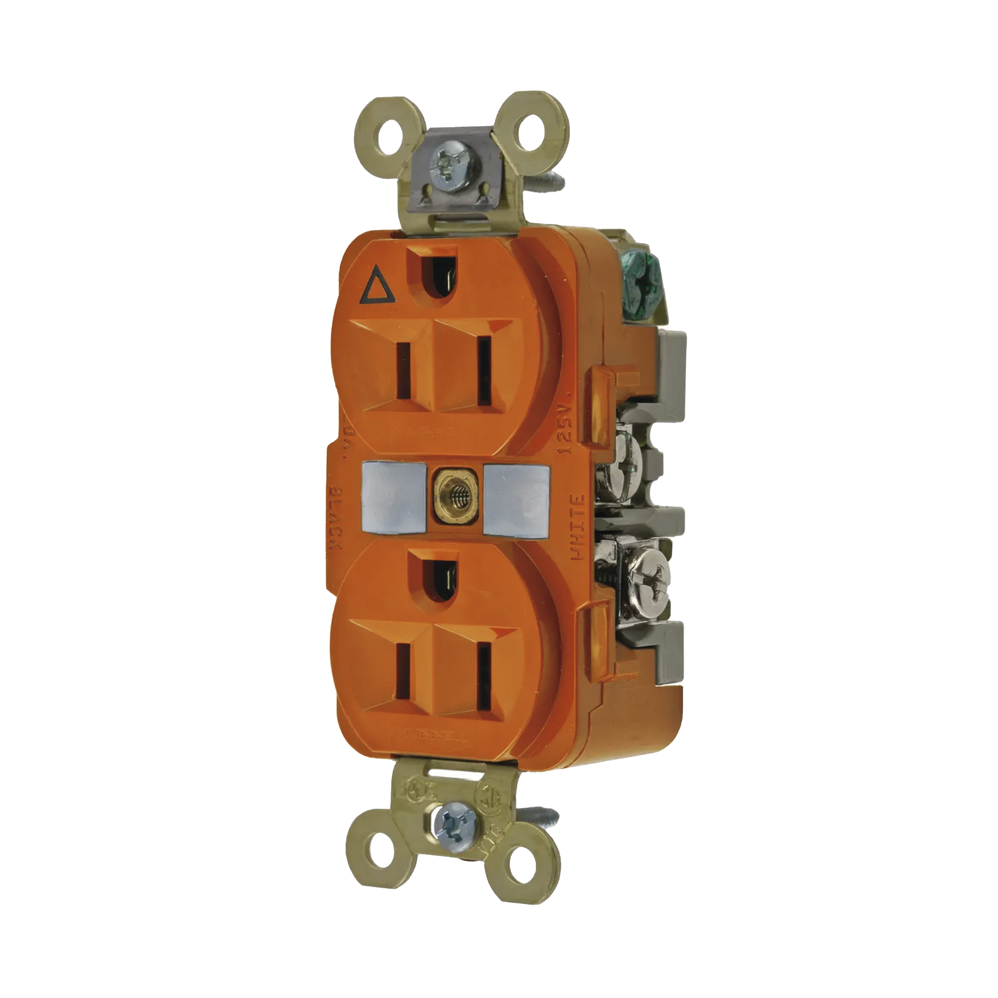 Contacto Dúplex Conexión a Tierra Aislada 15A 125V/ 2 Polos 3 Hilos/ Color Naranja/ Nema 5-15R/ Grado Industrial.