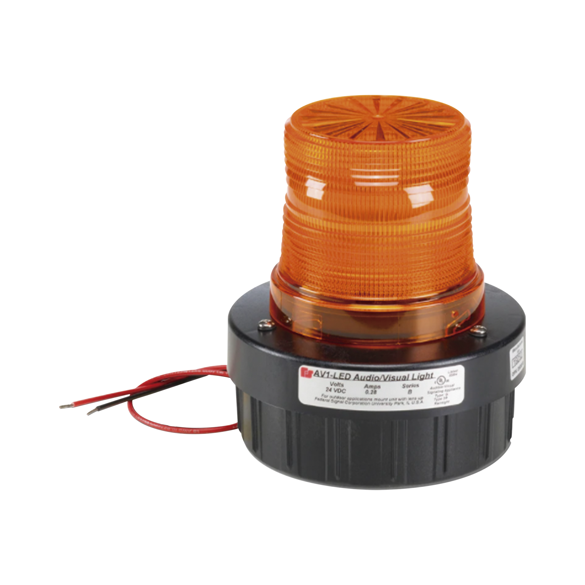Combinación de intermitente señal audible/visual, Listado por UL y cUL a 24 VCD color Ámbar, hasta 95 dB a 1m