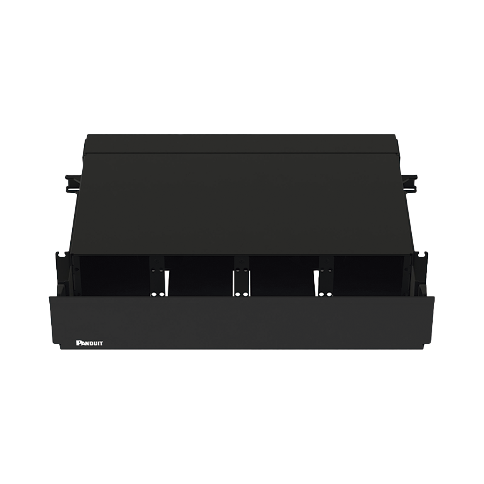 Panel de Distribución de Fibra Óptica, Acepta 8 Placas FAP o FMP, Bandeja Deslizable, Hasta 192 Fibras, Color Negro, 2 UR