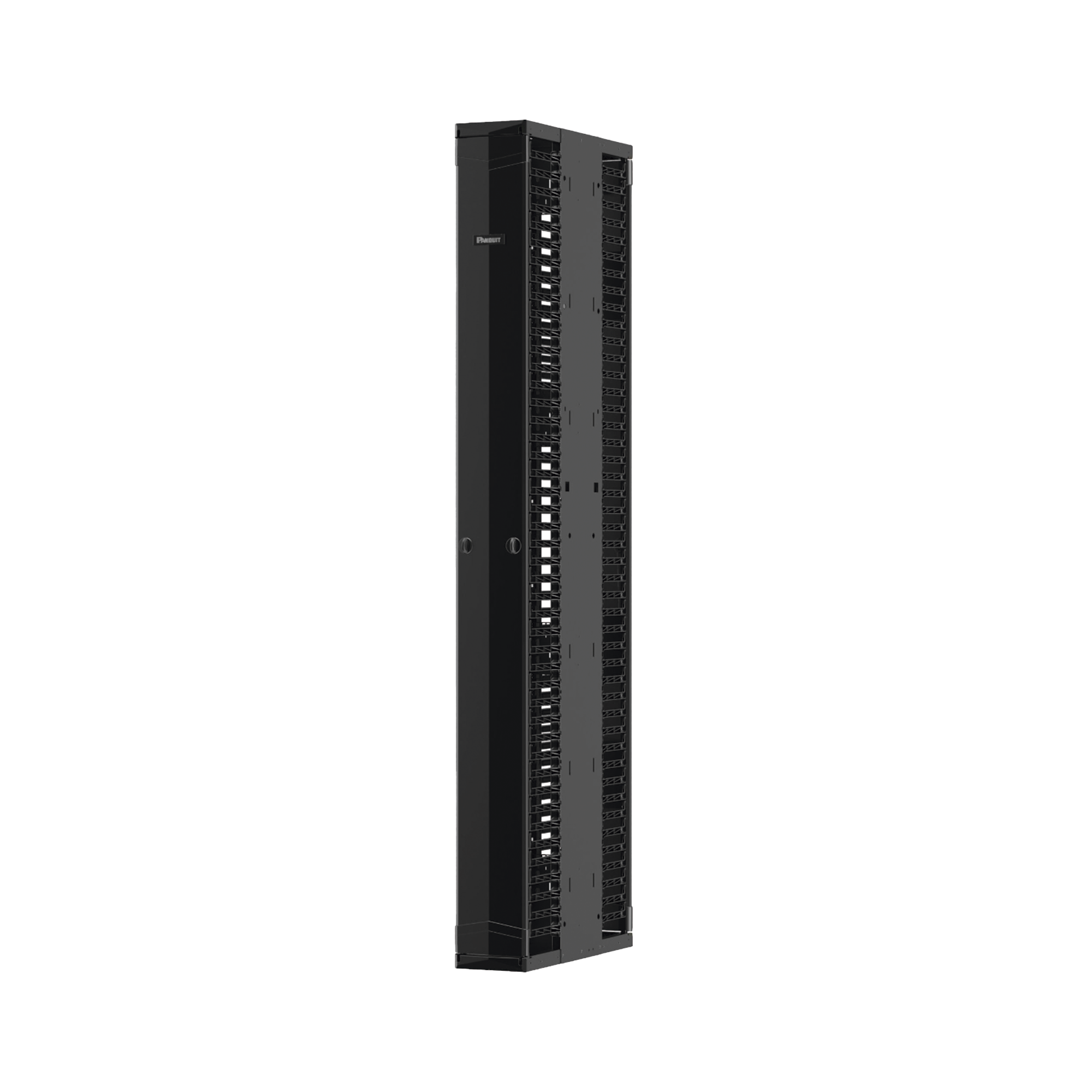 Organizador Vertical PatchRunner™ Mejorado, Doble (Frontal y Posterior), Para Rack Abierto de 45 Unidades, 12in de Ancho, Color Negro