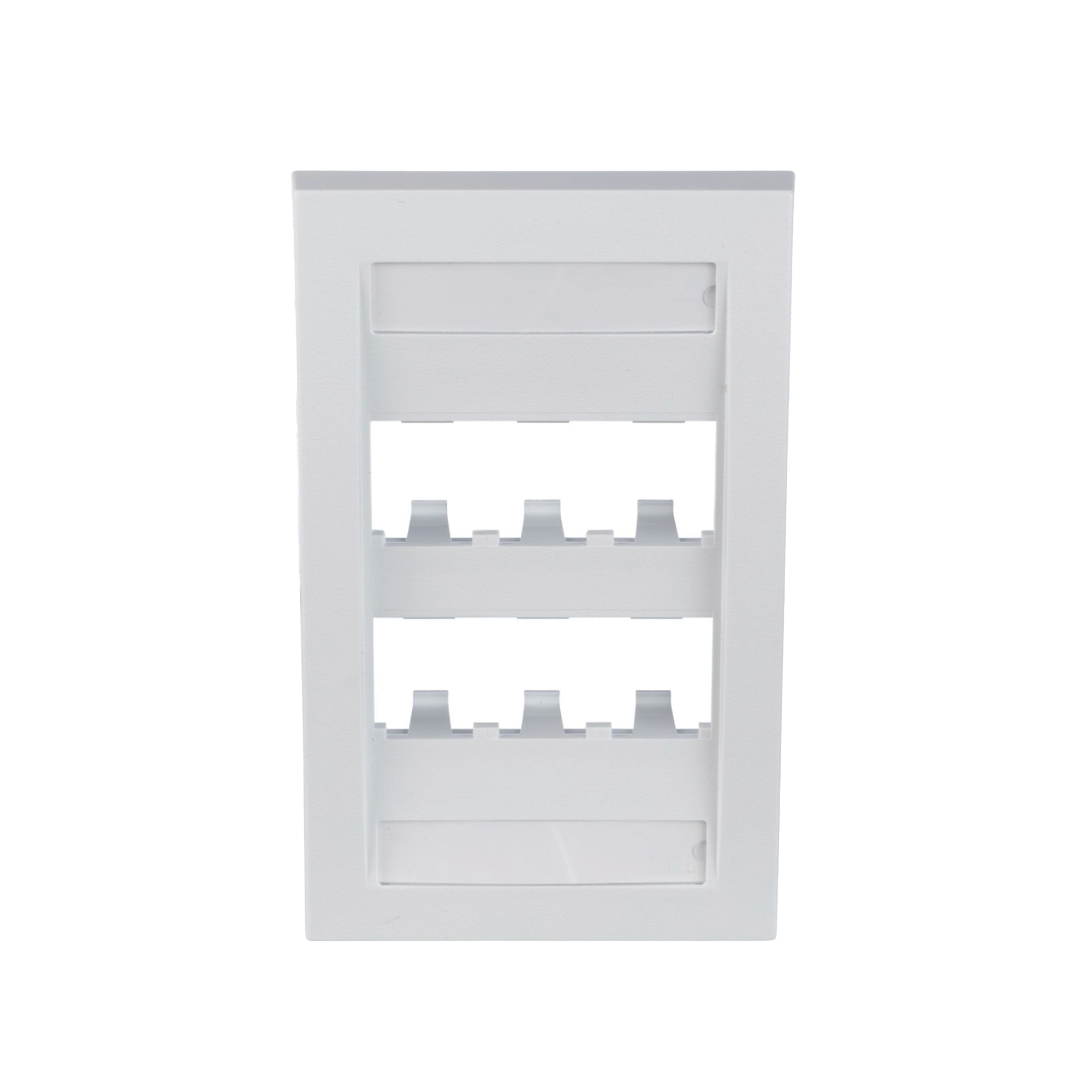 Placa de Pared Vertical Ejecutiva, Salida Para 6 Puertos Mini-Com, Con Espacios Para Etiquetas, Color Blanco