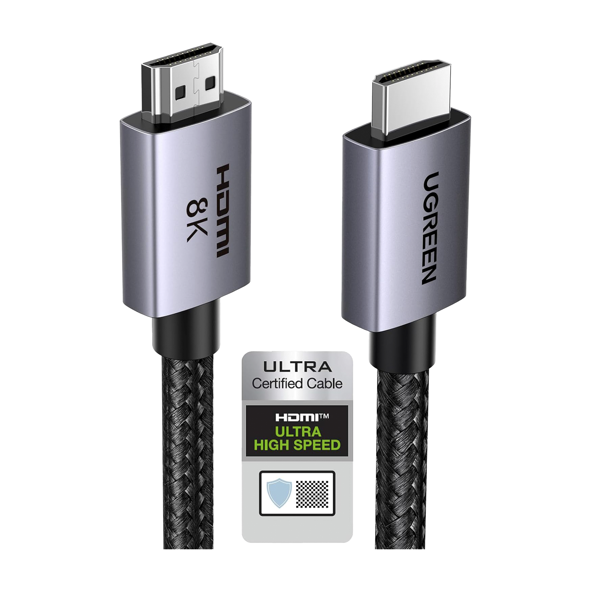Cable HDMI 2.1 de 8K@60Hz | 2 m | 48Gbps | HDR10+ | 3D Inversivo| eARC | Dolby ATMOS | VVR | QMS | QFT | ALLM | 3 modos de Visualización | Certificado HDMI 8K | Niquelado | Nylon Trenzado | Carcasa de Aluminio.