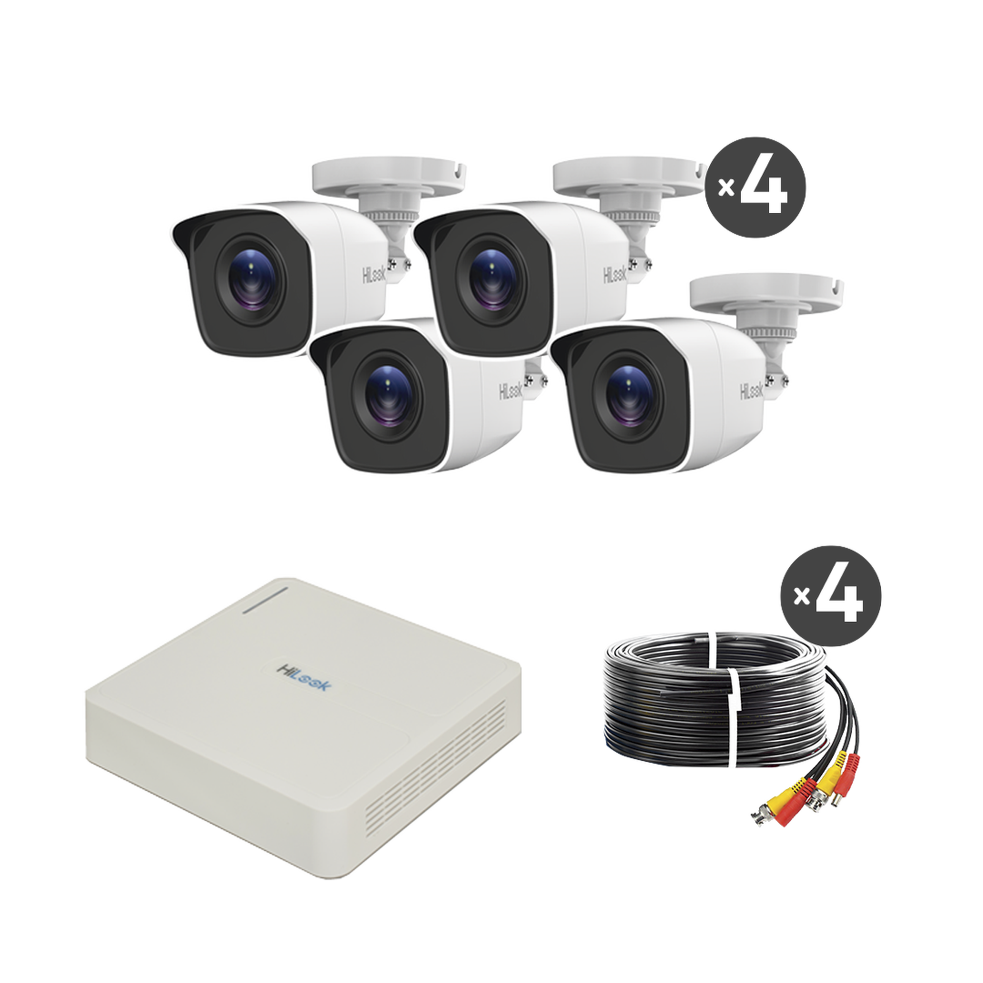 Kit TurboHD 720p / DVR 4 canales / 4 Cámaras Bala de Metal / 4 Cables 18 Mts / H.265+ / 1 Fuente de Poder Profesional / Accesorios de Instalación