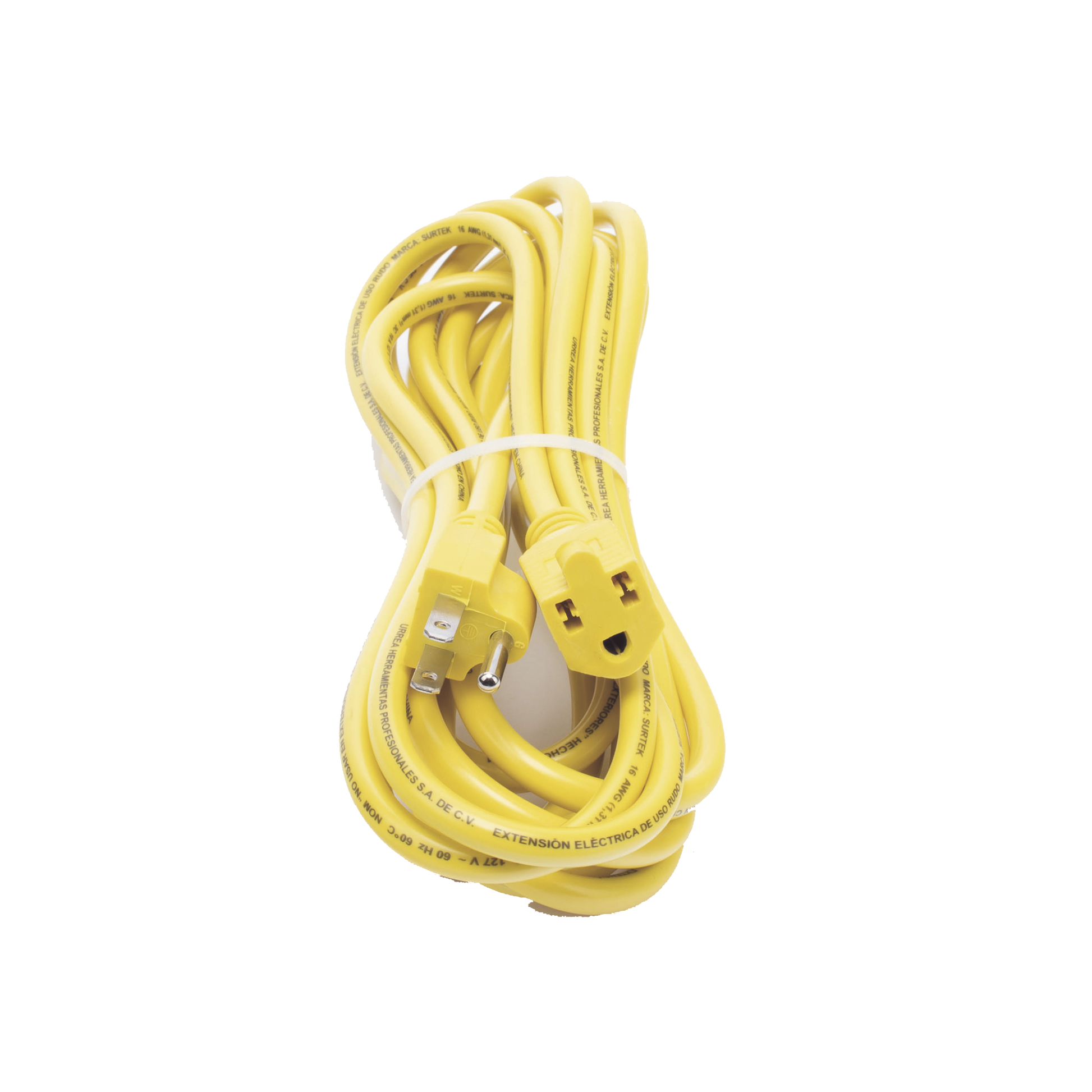 Extensión Eléctrica de Uso Rudo Aterrizada 5 metros /127 V CA 10 A Máximo / Color Amarillo.