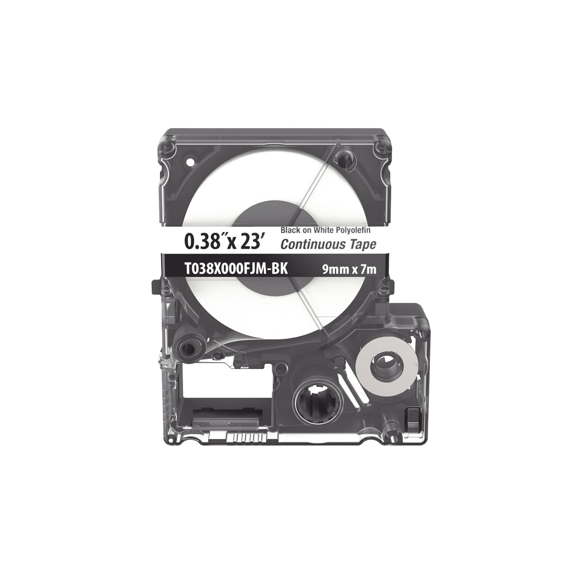 Casete de Etiquetas de Poliolefina de Cinta Continua, Color Negro Sobre Blanco, Uso Interior/Exterior, 9 mm de Ancho x 7 Metros de Largo