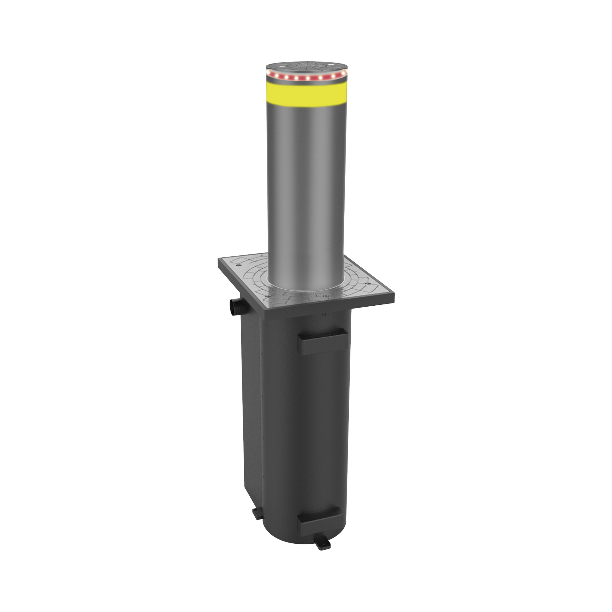 Bolardo hidraulico de acero pintado.