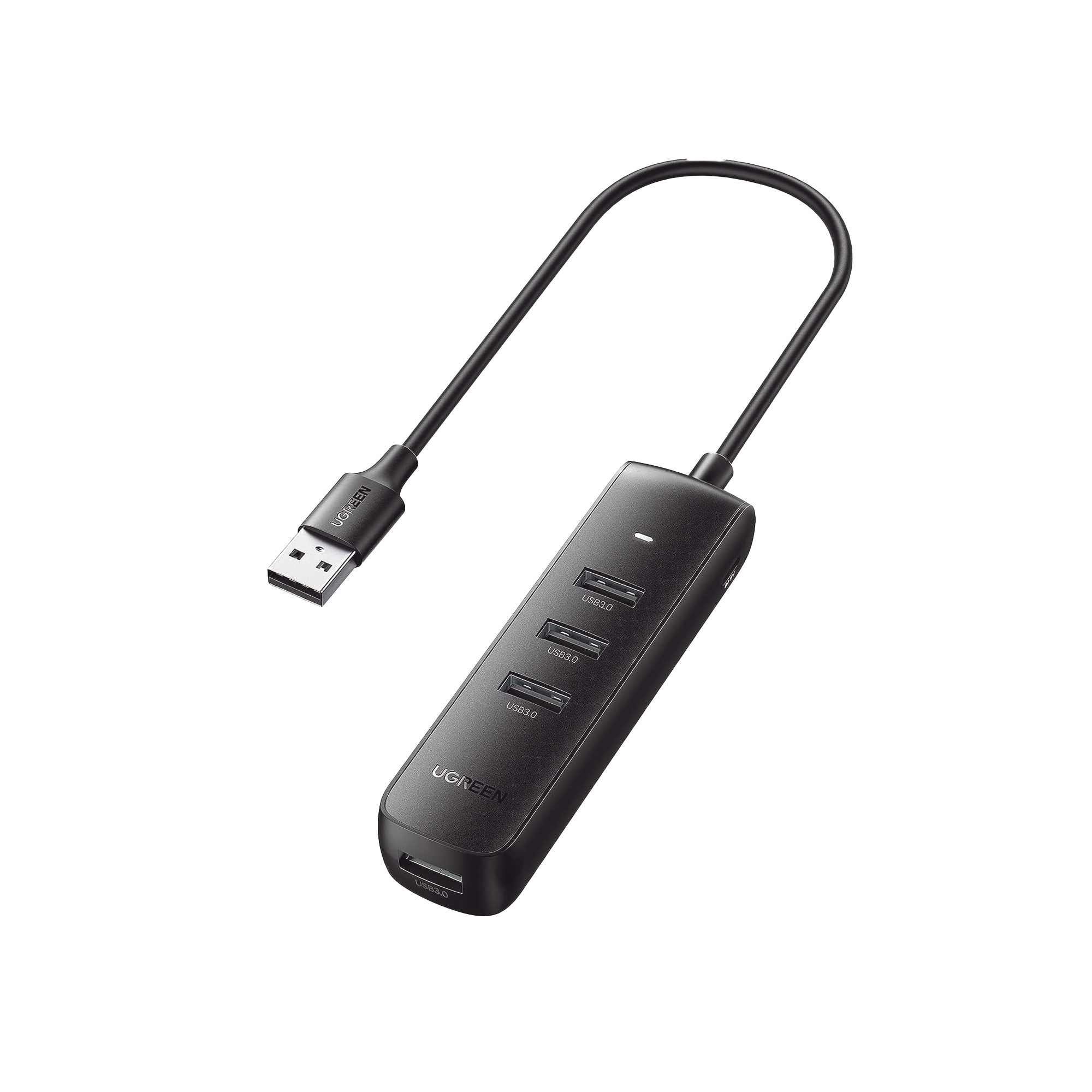 HUB USB-A 3.0 4 en 1 | 4 Puertos USB-A 3.0 (5Gbps) | Cable de 25 cm | Indicador Led | Ideal para Transferencia de Datos | Entrada USB-C para alimentar equipos de mayor consumo como discos duros | Color Negro.