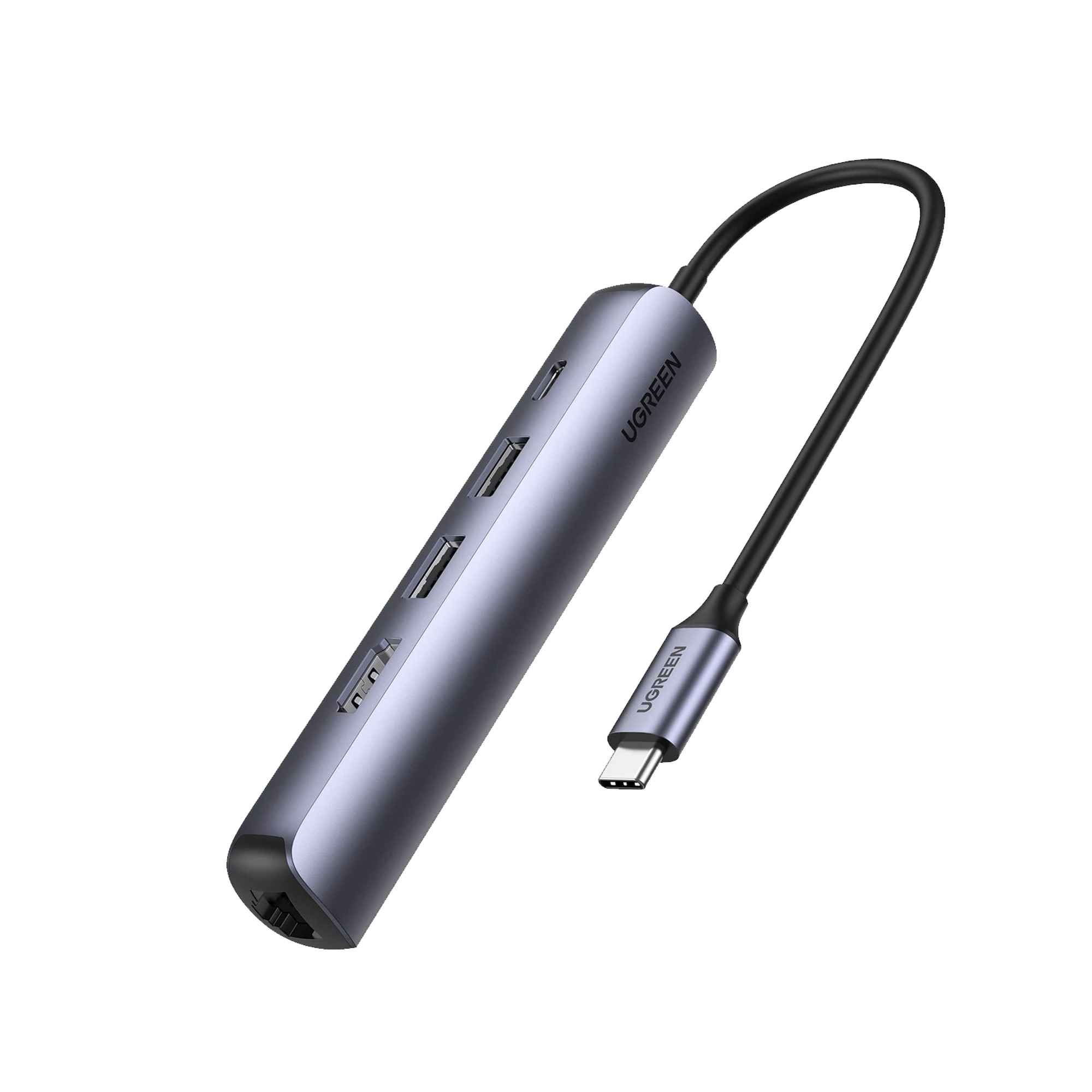 HUB USB-C (Docking Station) 5 en 1 | Ultra Delgado | 2 USB-A 3.1 a (5 Gbps) | HDMI 4K@60Hz | RJ45 (Gigabit Ethernet) | USB-C PD Carga Rápida 100W | Soporta OTG | Chips Inteligentes | Pequeño y Ligero | Caja de Aluminio.