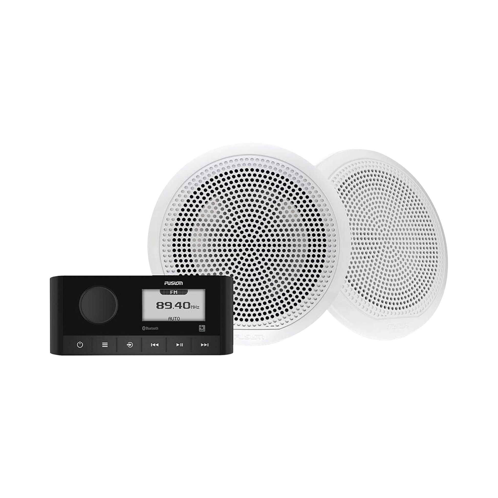 Sistema de estero marino MS-RA60 con dos bocinas de diseño clásico incluidas.