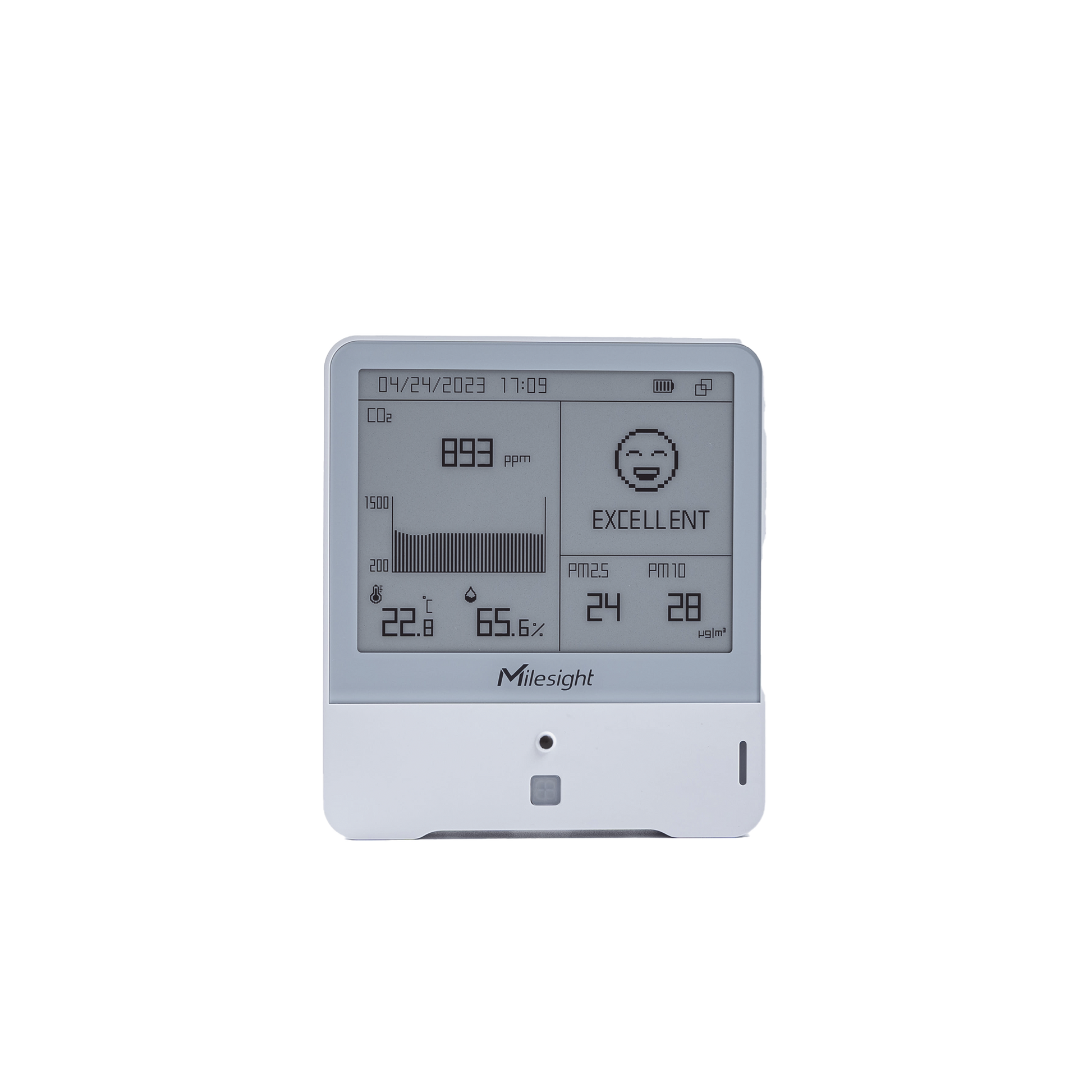 AM308 es un sensor IAQ integral para detectar concentración de CO2 , temperatura, humedad, luz, nivel de HCHO/O3, TVOC, presión barométrica, PM2.5, PM10 y movimiento.