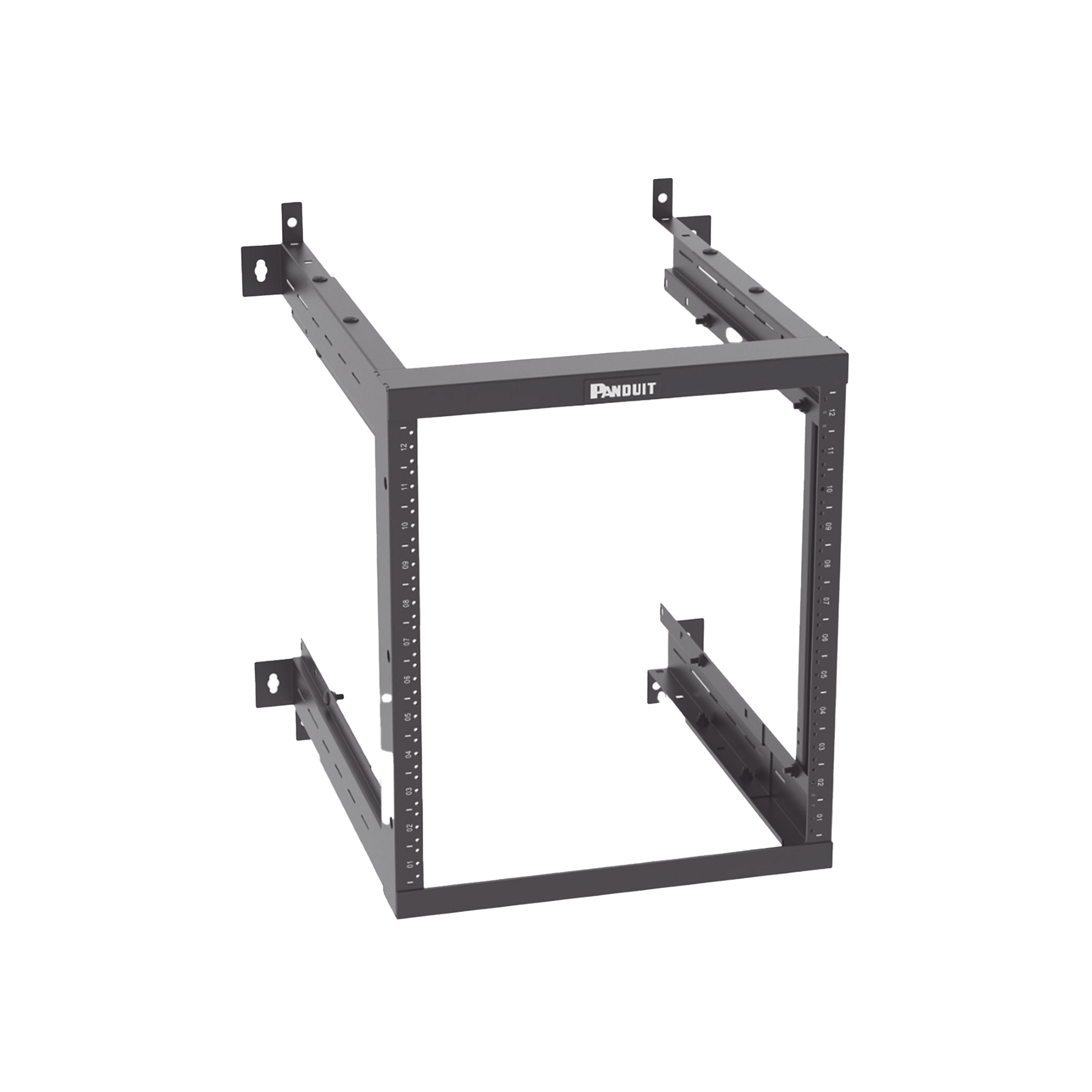 Rack PanZone® de Montaje en Pared, de 19in, Profundidad Ajustable, Rieles Numerados y Roscados #12-24, 12 UR, Color Negro