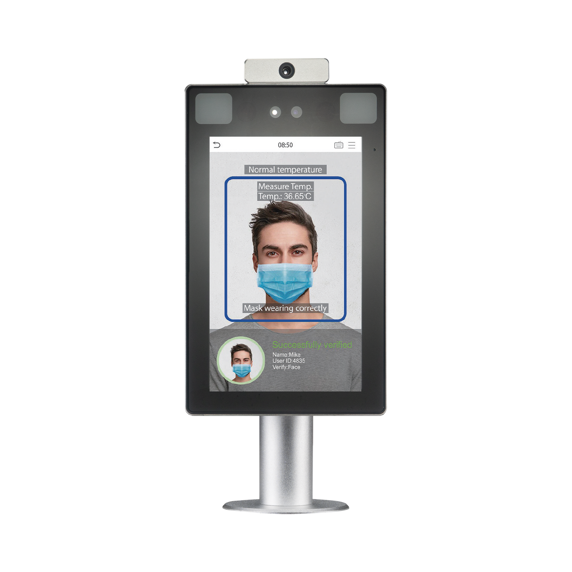 Lector de Rostros / Detección de temperatura corporal / SIN CONTACTO / Acepta Selfies / Reconocimiento a 2.5 metros / ADMS GRATIS / Montaje de Poste
