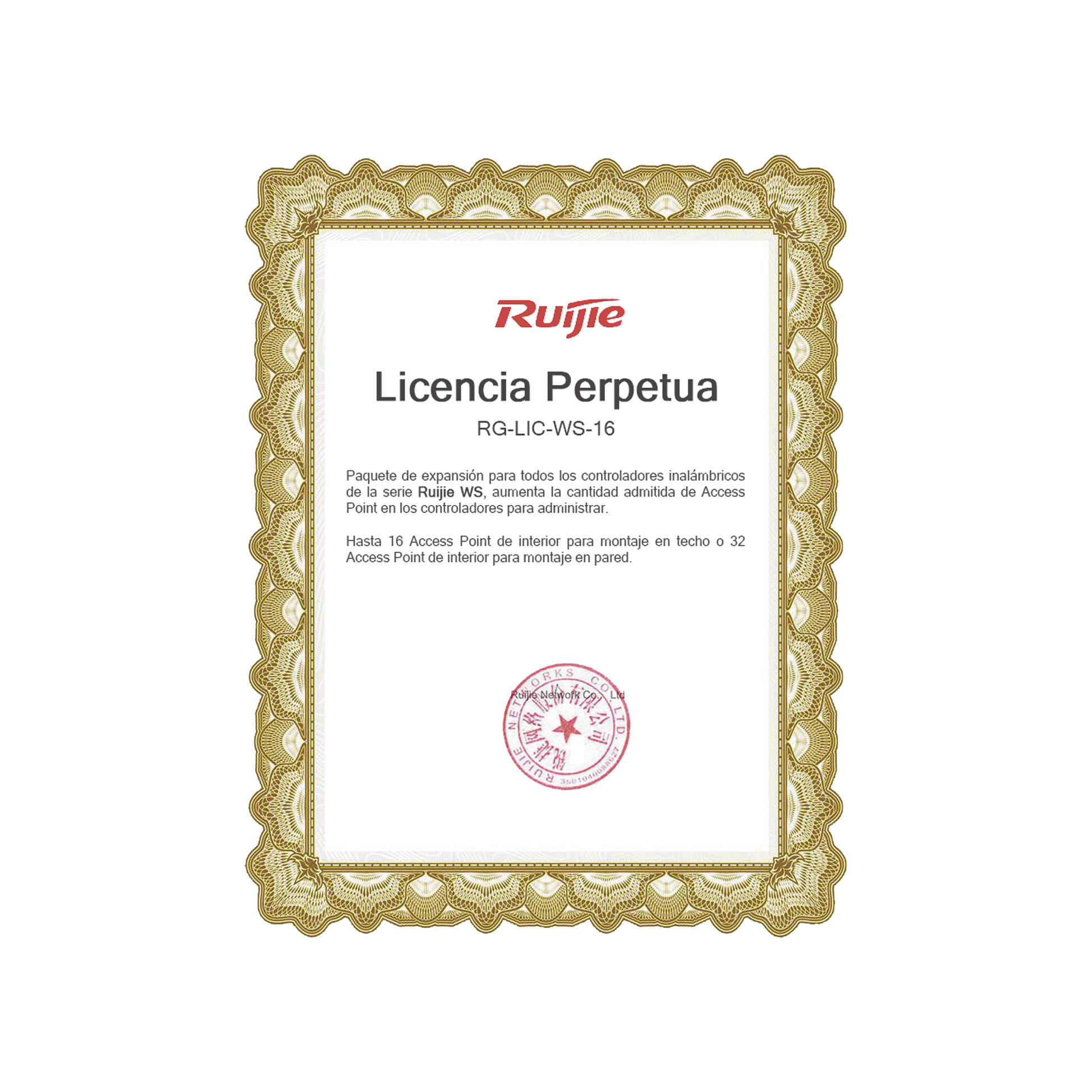 Paquete de expansión para todos los controladores inalámbricos de la serie Ruijie WS, aumenta la cantidad admitida de Access Point en los controladores para administrar.